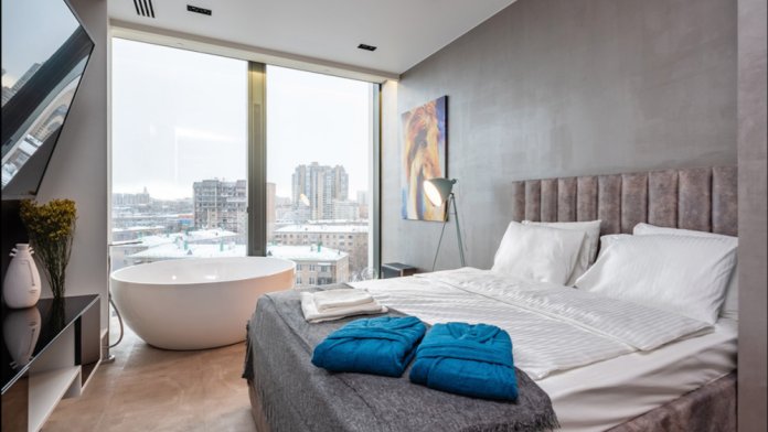 Изюминкой нашей уникальной студии является ванная - прямо в спальне вы сможете принять ванную и выпить чашечку кофе.