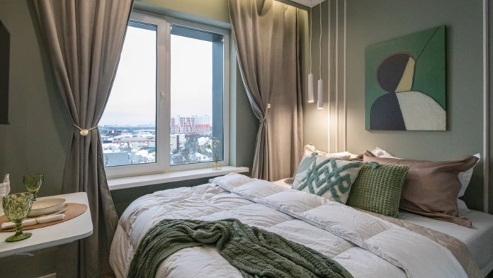Современная студия в ЖК «Sky Skolkovo». Большие окна. Качественная дорогая мебель и техника. Интерьер продуман до мелочей. Апартаменты, откуда не хочется уезжать.