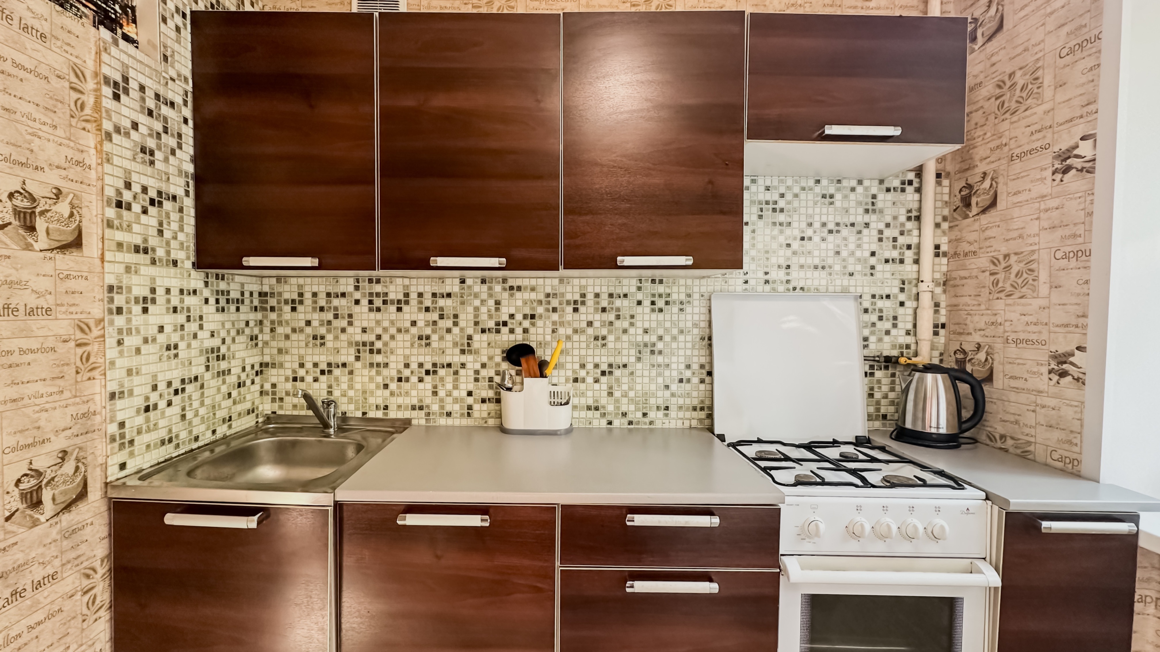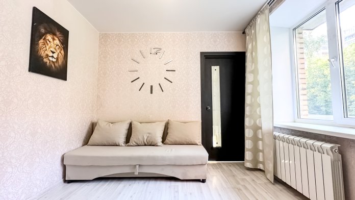 Удобства: двуспальная кровать, двуспальный диван, вместительный шкаф, сушилка для белья, фен, оборудованная кухня, холодильник, полный комплект посуды для приготовления и приёма еды, стиральная машина. После каждого выезда гостей проводим генеральную уборку.