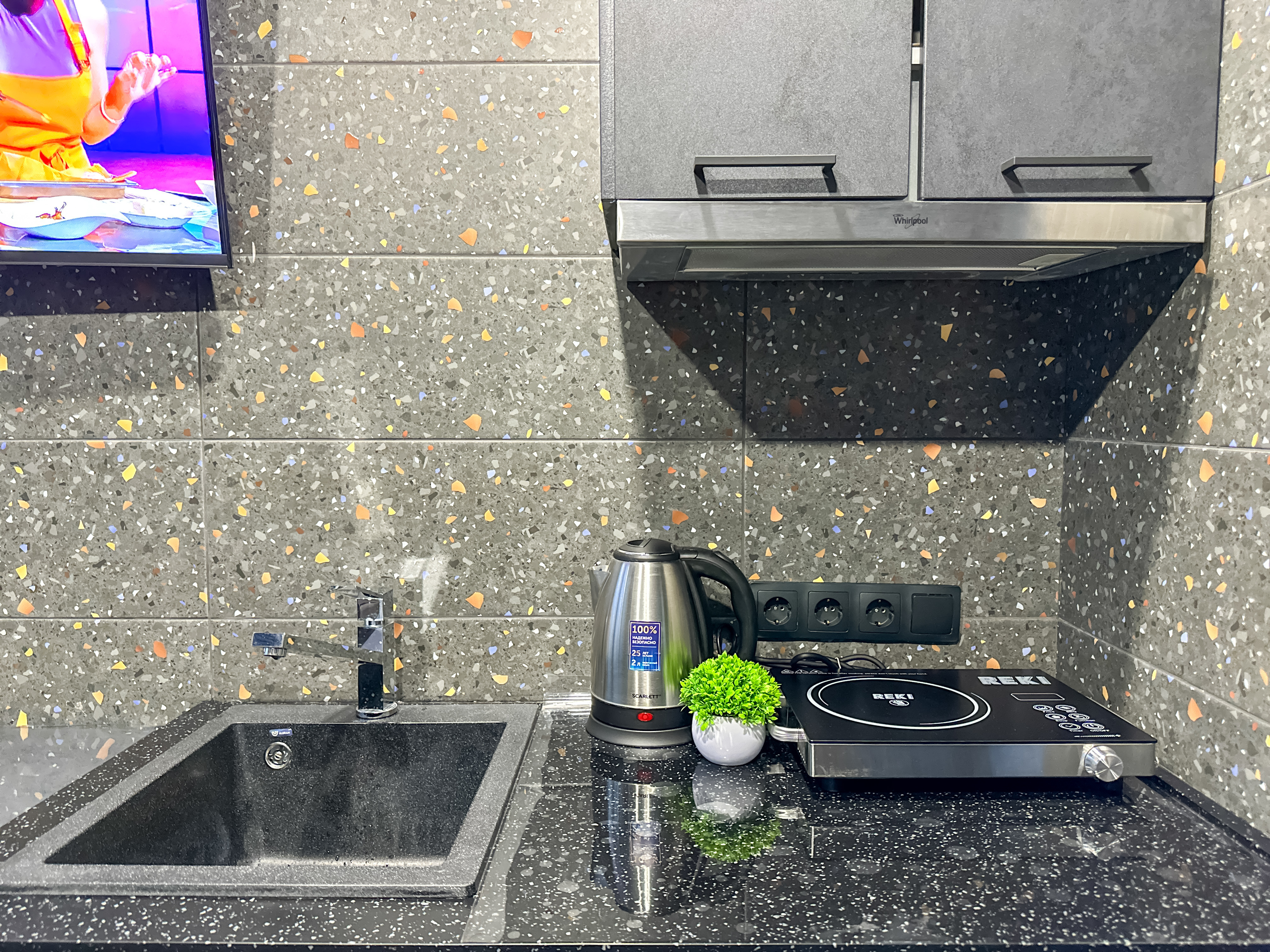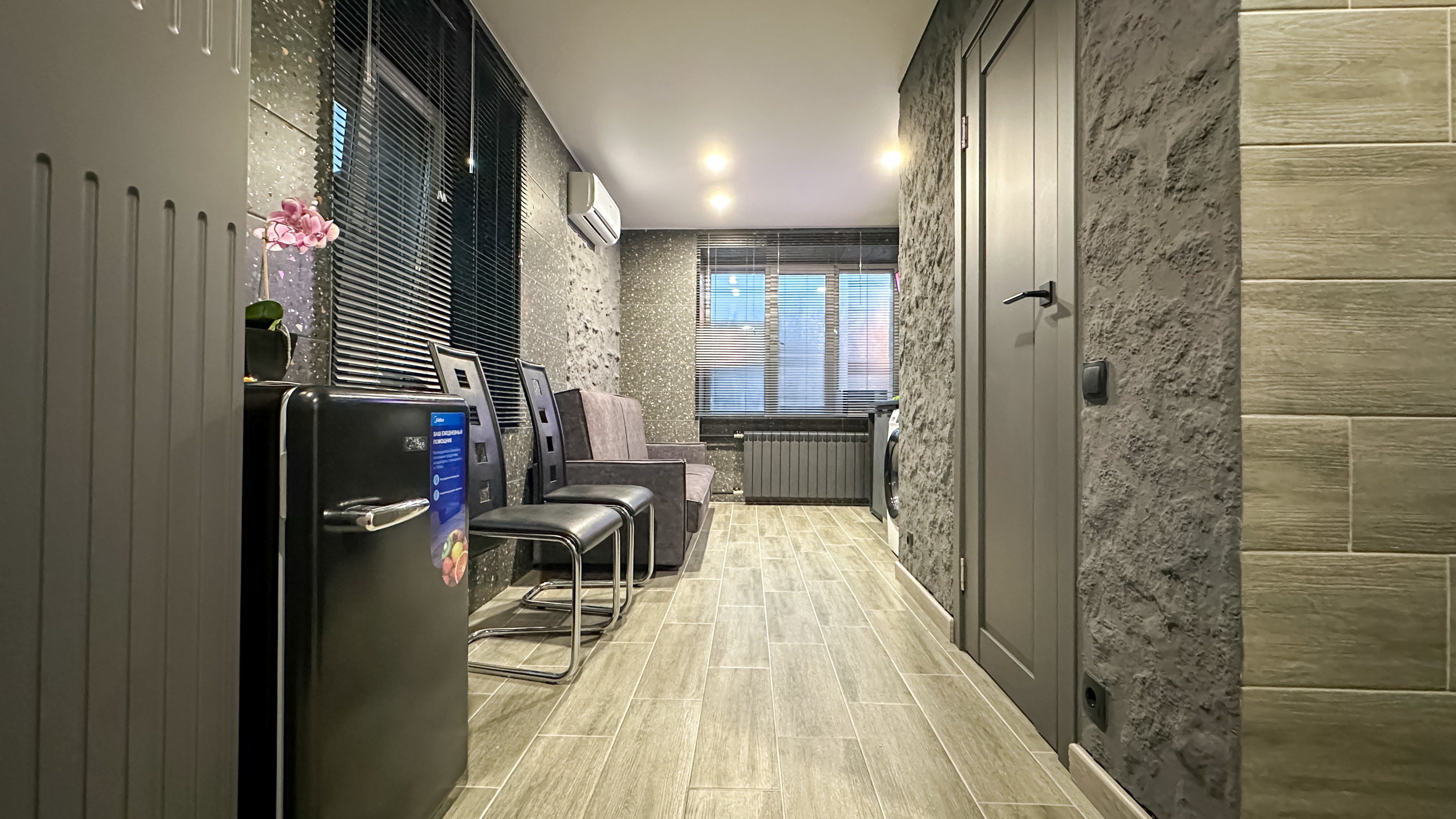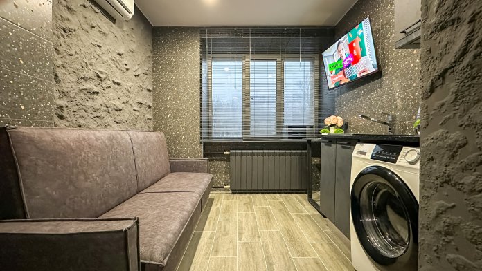 Удобства: двуспальный диван, вместительный шкаф, сушилка для белья, фен, оборудованная кухня, холодильник, полный комплект посуды для приготовления и приёма еды, стиральная машина . После каждого выезда гостей проводим генеральную уборку.