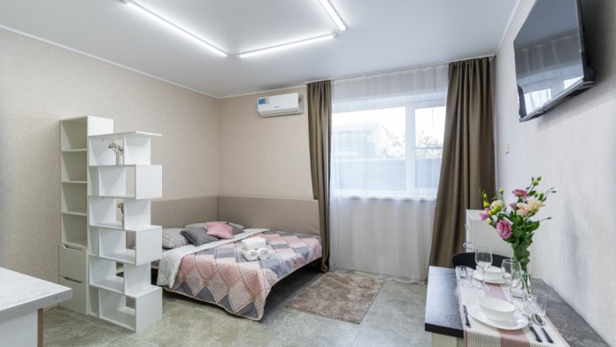 Гарантия чистоты квартиры, зонирование зоны сна и отдыха. Уютная и просторная квартира с панорамным балконом.