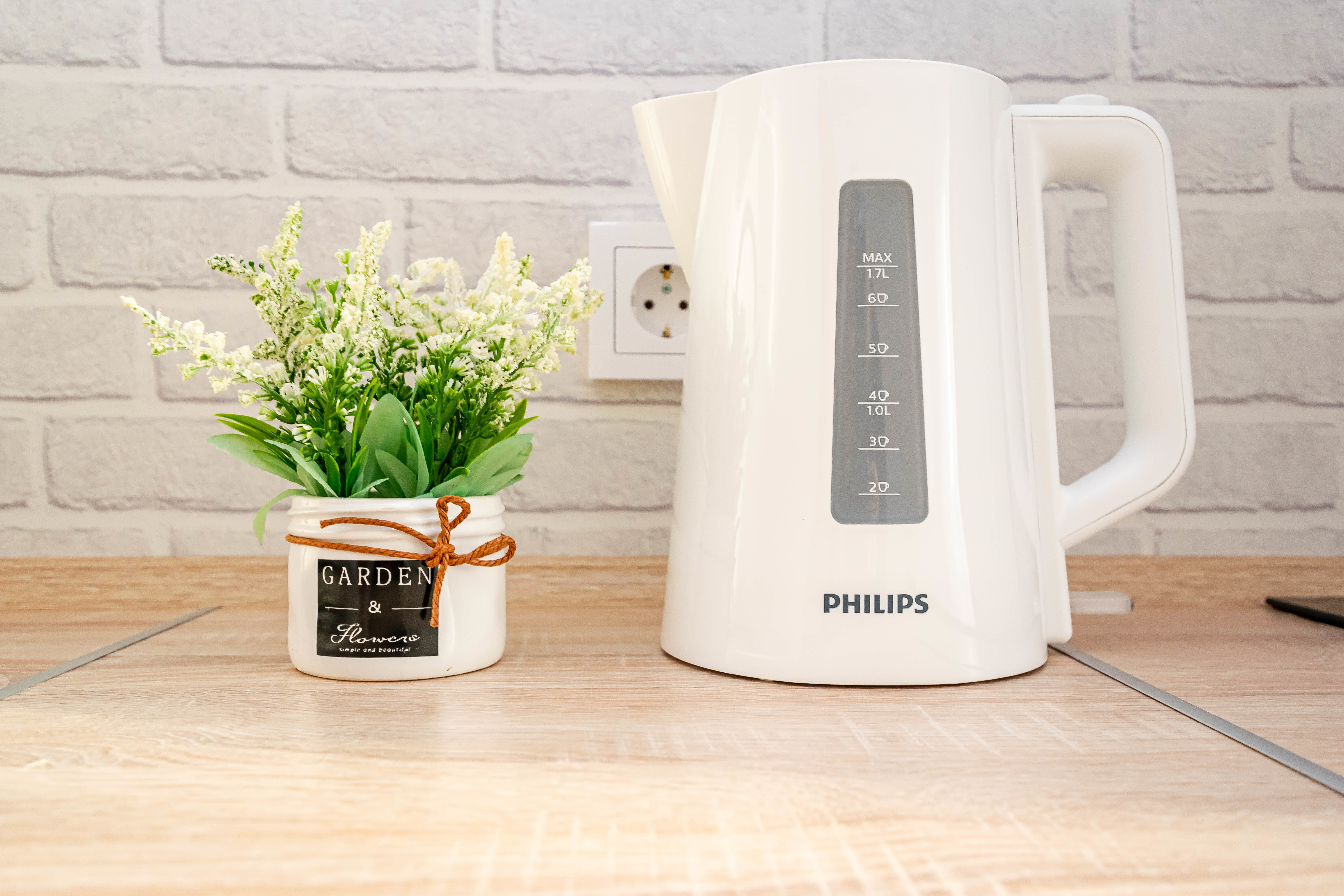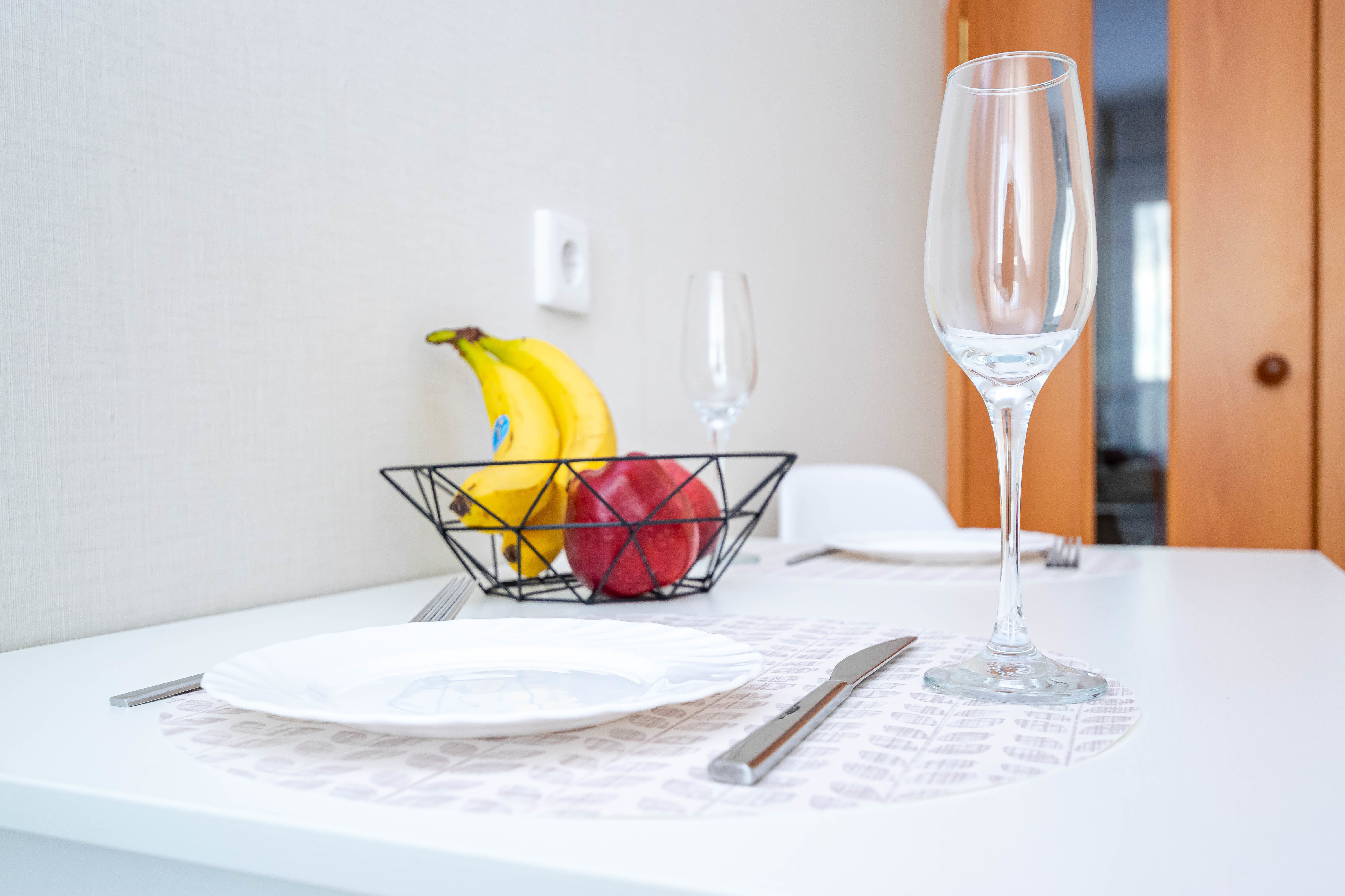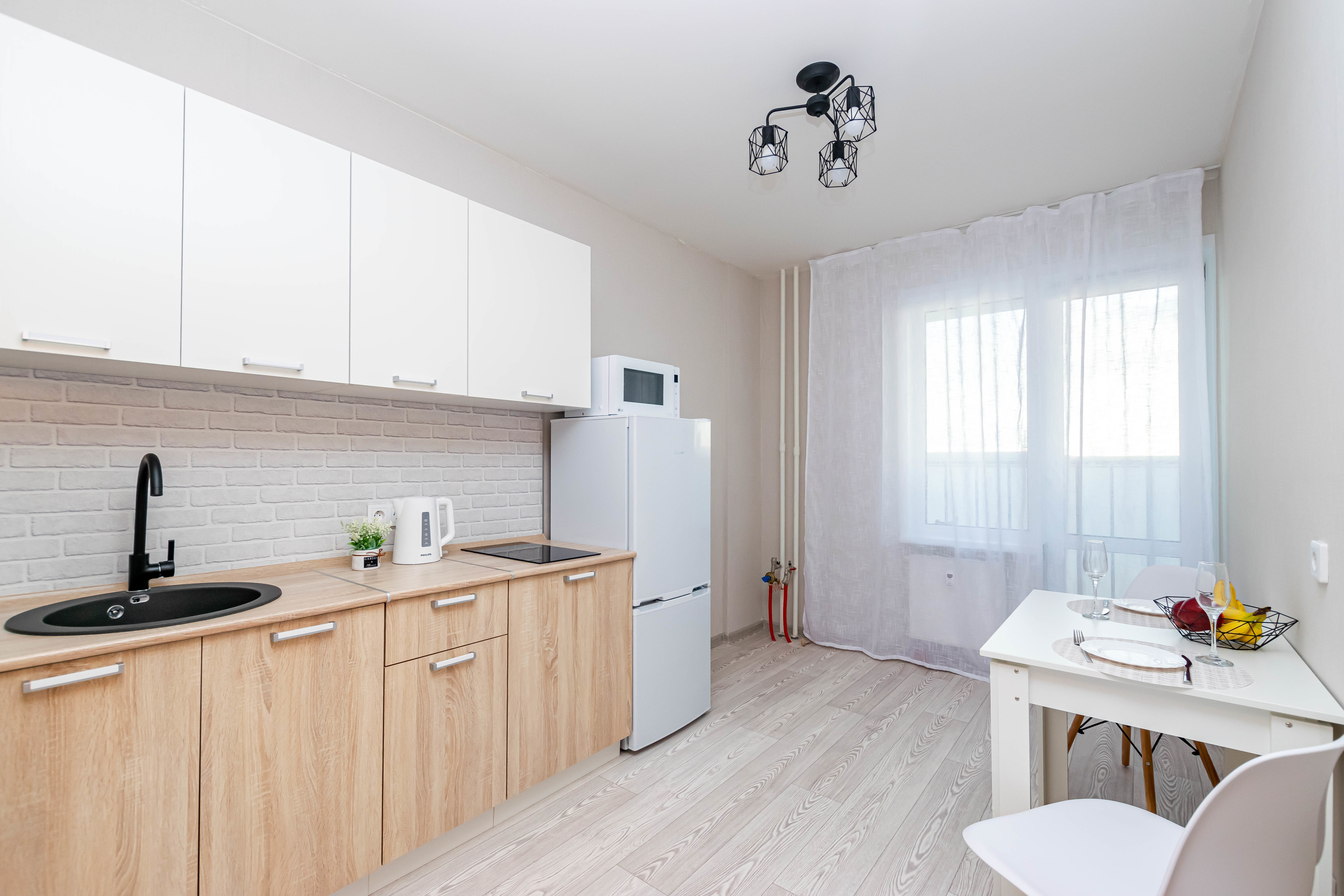 - Полный набор техники: холодильник, стиралка, фен, утюг, чайник, микроволновка, телевизор с функцией Smart-TV.