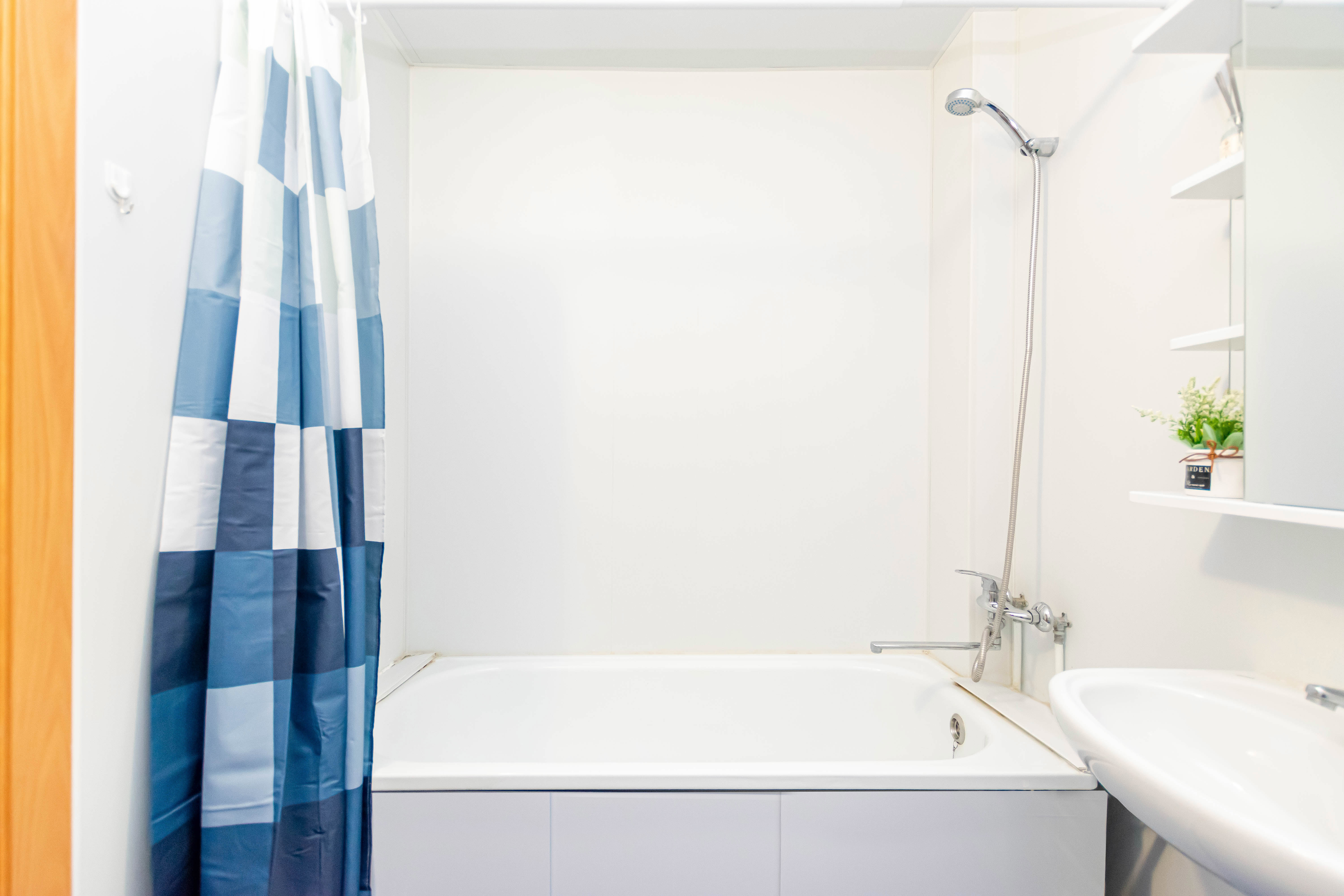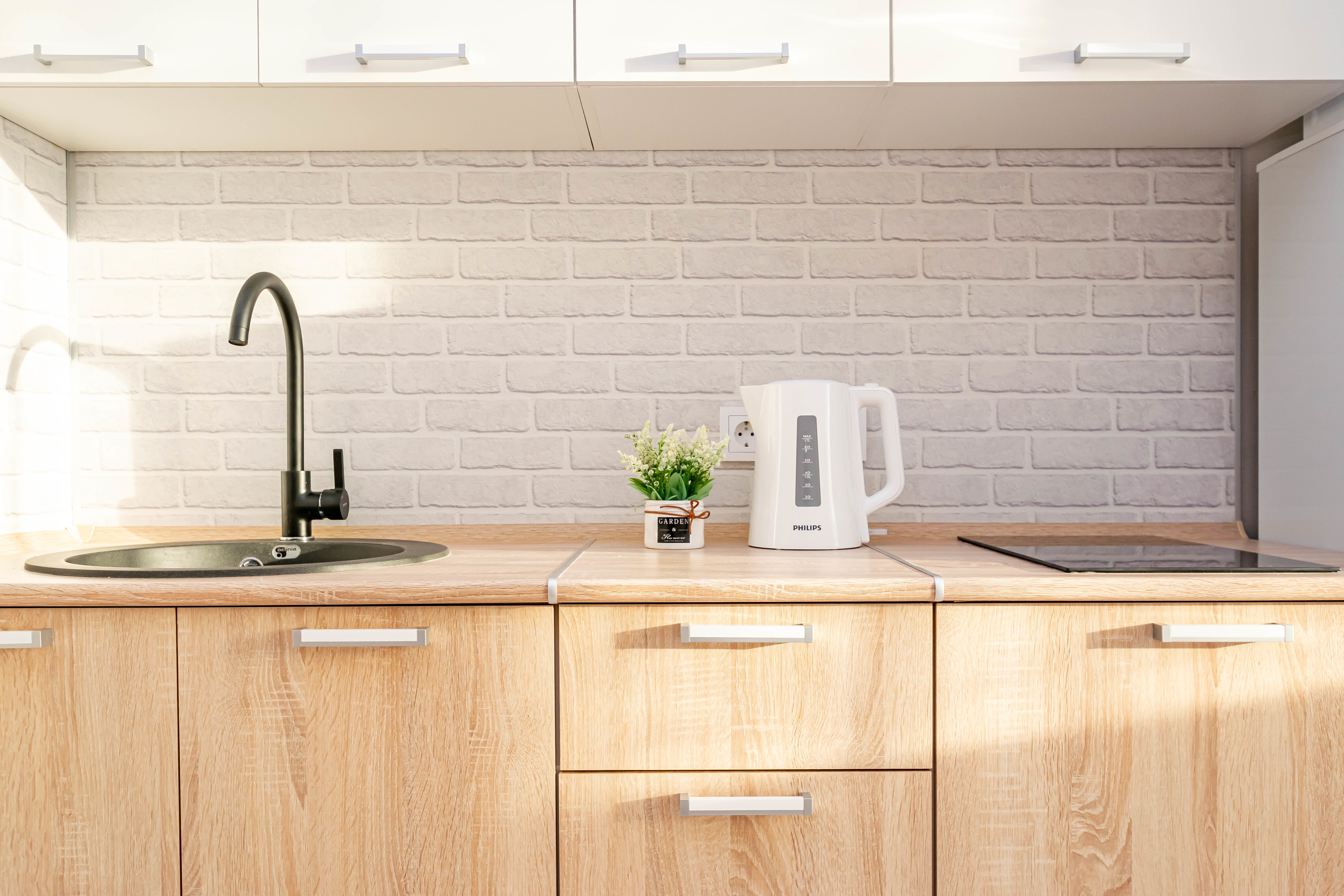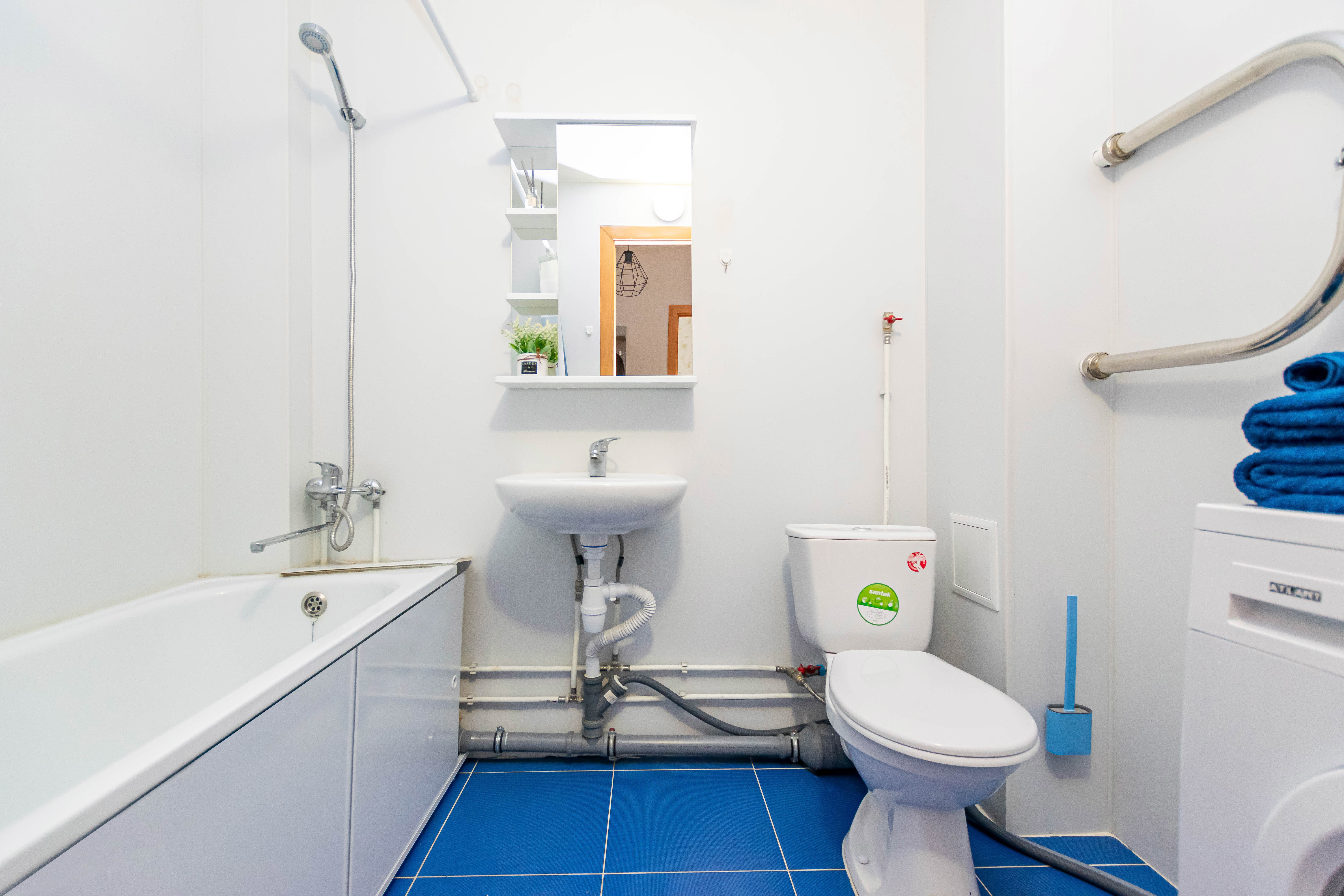 - Полный набор техники: холодильник, стиралка, фен, утюг, чайник, микроволновка, телевизор с функцией Smart-TV.