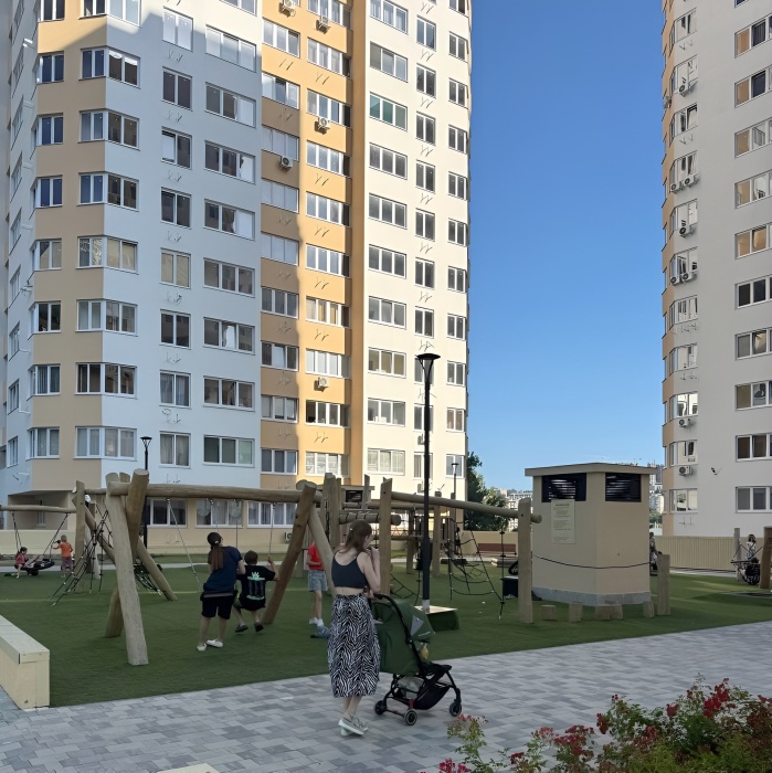 - Две детские площадки, зоны отдыха и спортивная площадка.