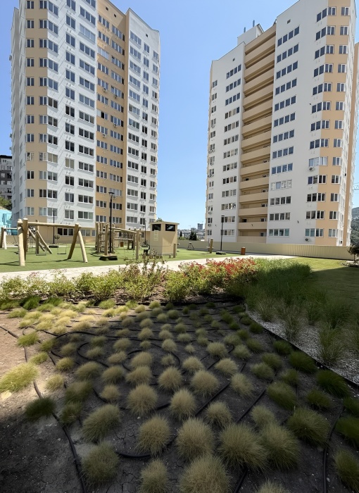 - Две детские площадки, зоны отдыха и спортивная площадка.