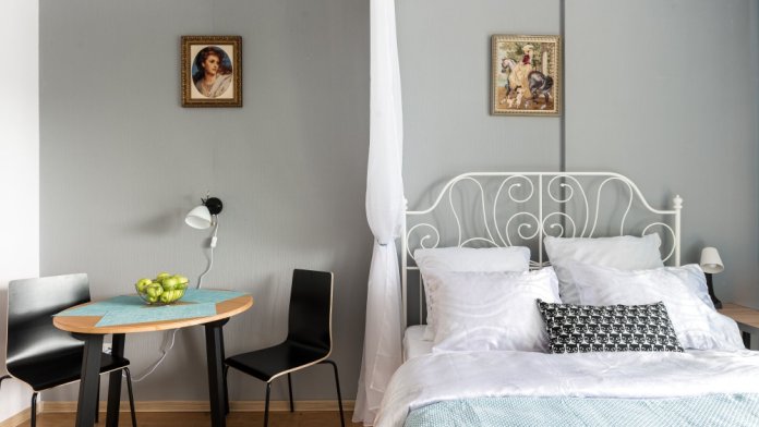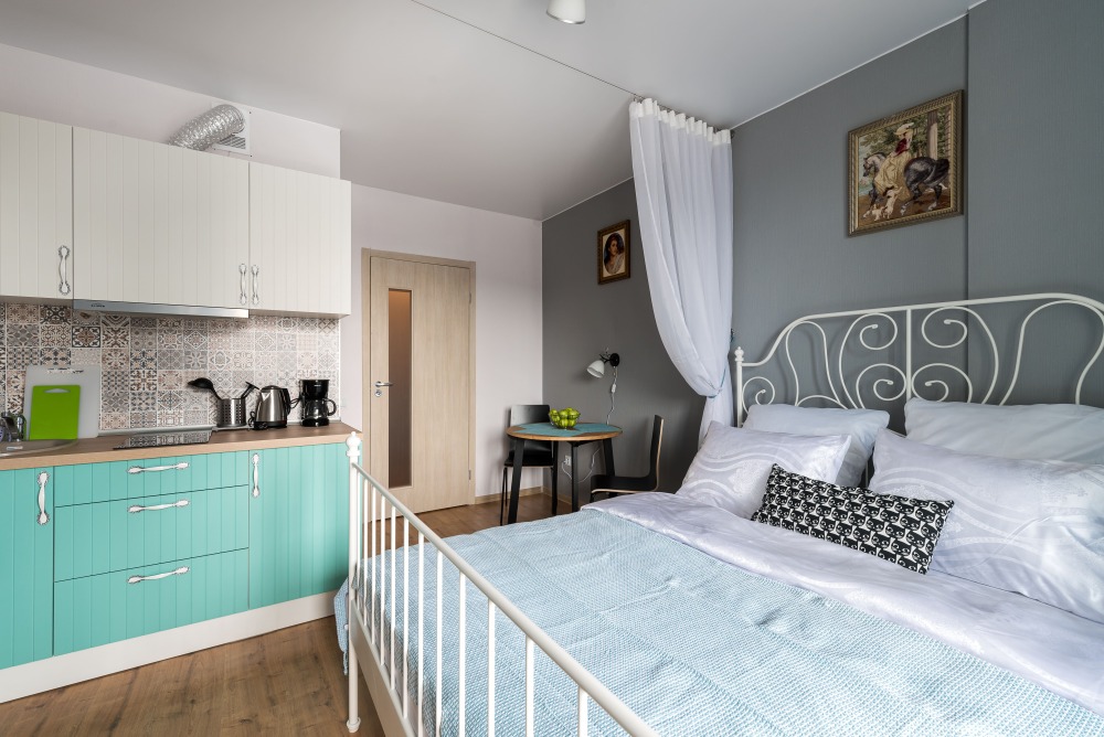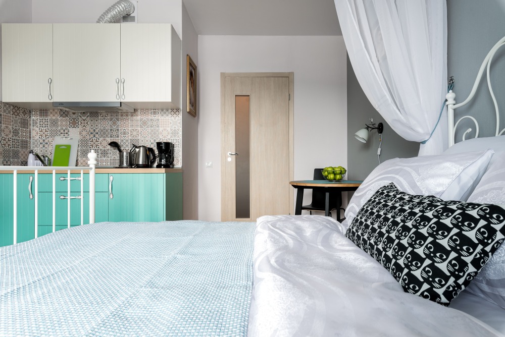 В апартаментах можно воспользоваться полностью оснащенной кухней, отдельной ванной комнатой с туалетом, стиральной машиной, феном, косметическими принадлежностями, полотенцами. Есть утюг, гладильная доска, платяной шкаф. На балконе можно посидеть за столиком и полюбоваться белыми ночами. Удобная и широкая кровать порадует Вас шикарным постельным бельем и белым балдахином. Белые ночи под белым балдахином, что может быть романтичнее. Ждем только Вас.