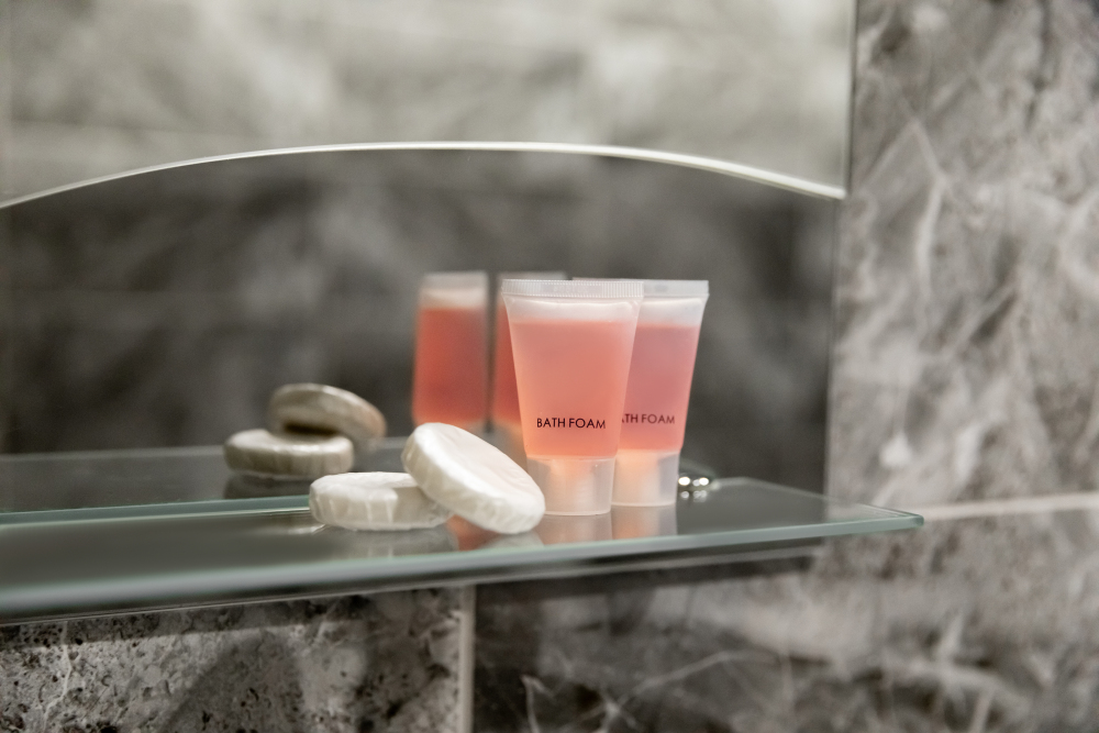 Собственная ванная комната с ванной в каждом номере. По запросу предоставляется фен.