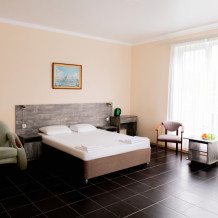 Для Вашего комфорта в номере предусмотрена двуспальная кровать (с возможностью разделения на 2 односпальные), а также дополнительная односпальная кровать.