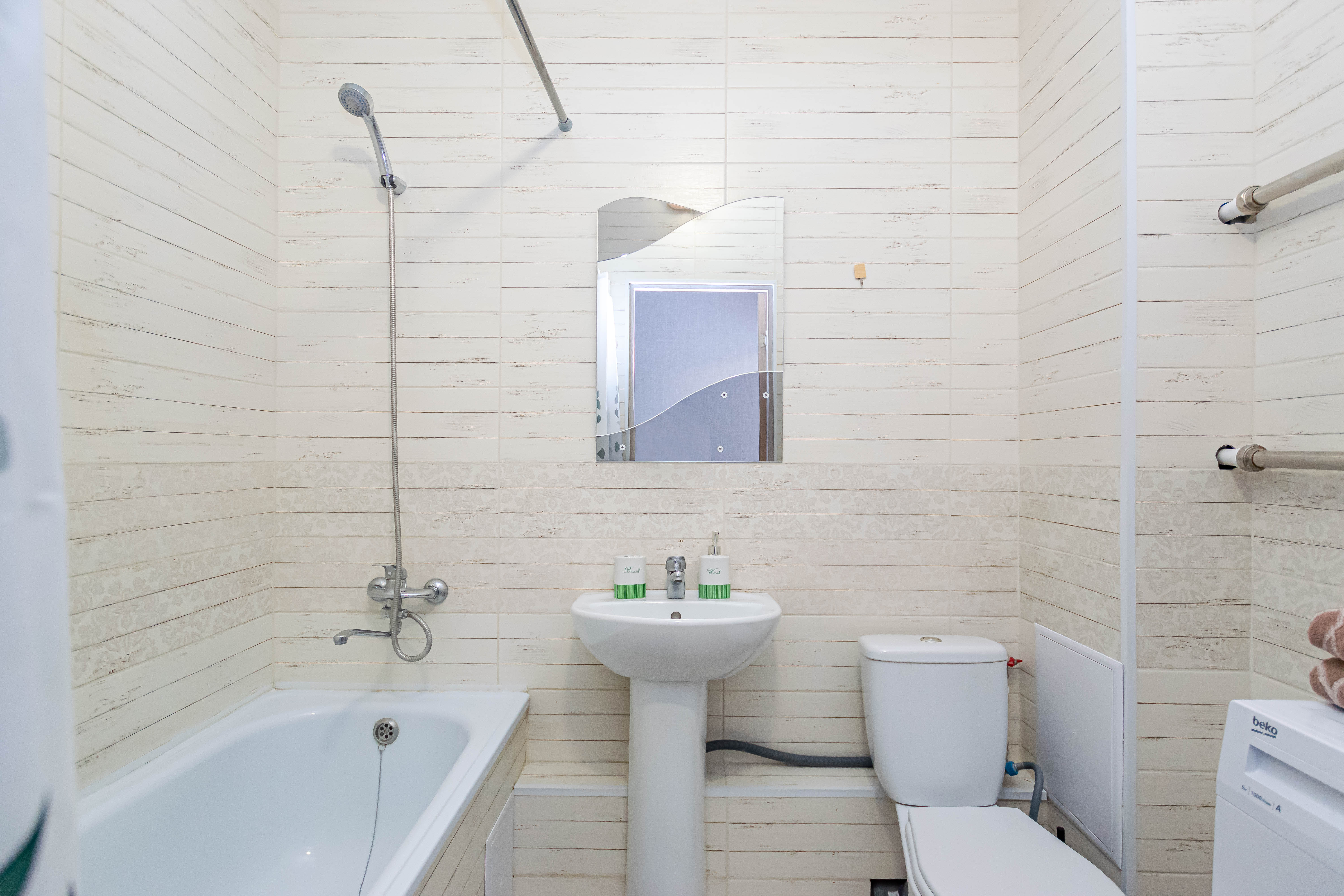 - Полный набор техники: холодильник стиралка, фен, утюг, чайник, микроволновка, водонагреватель.
