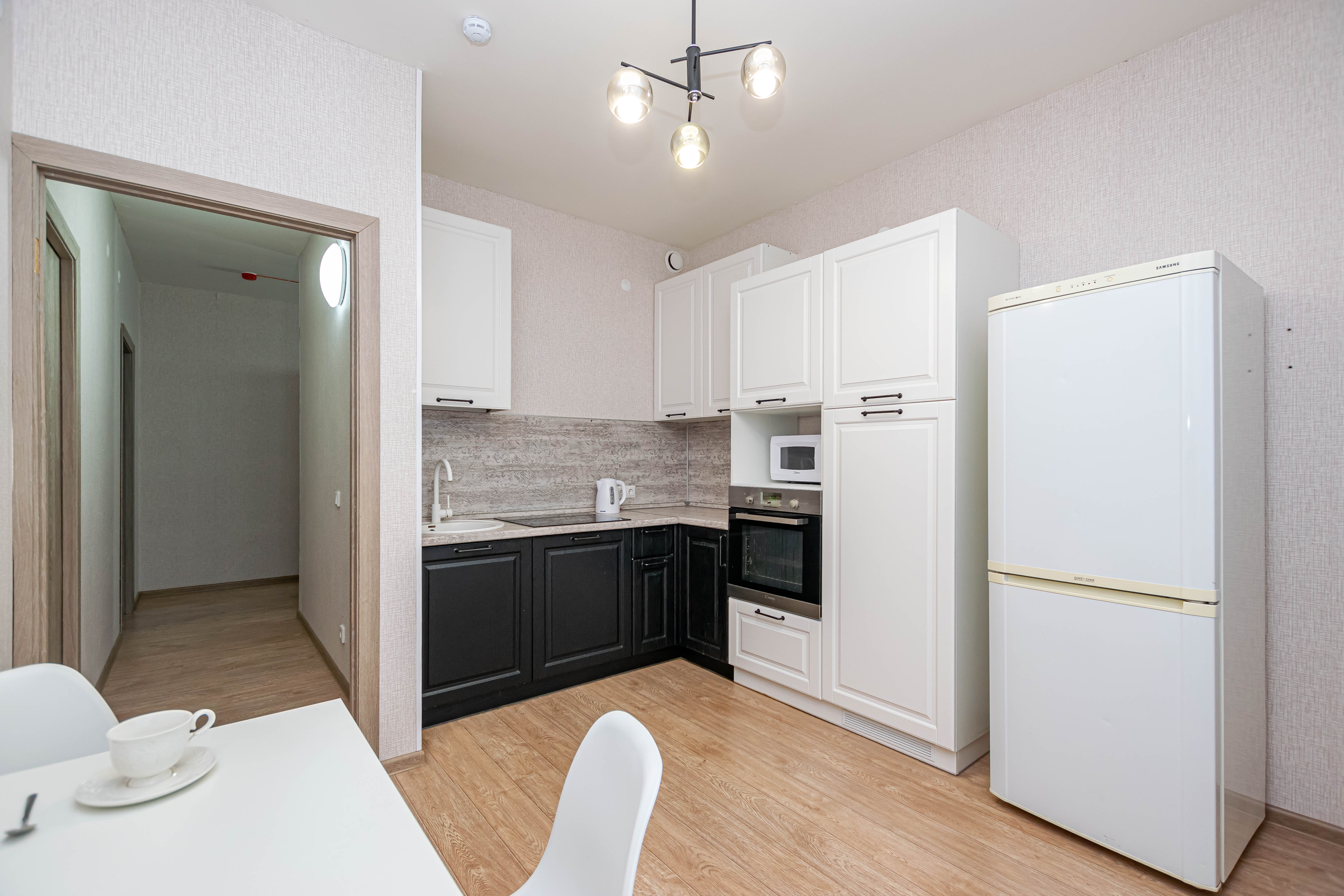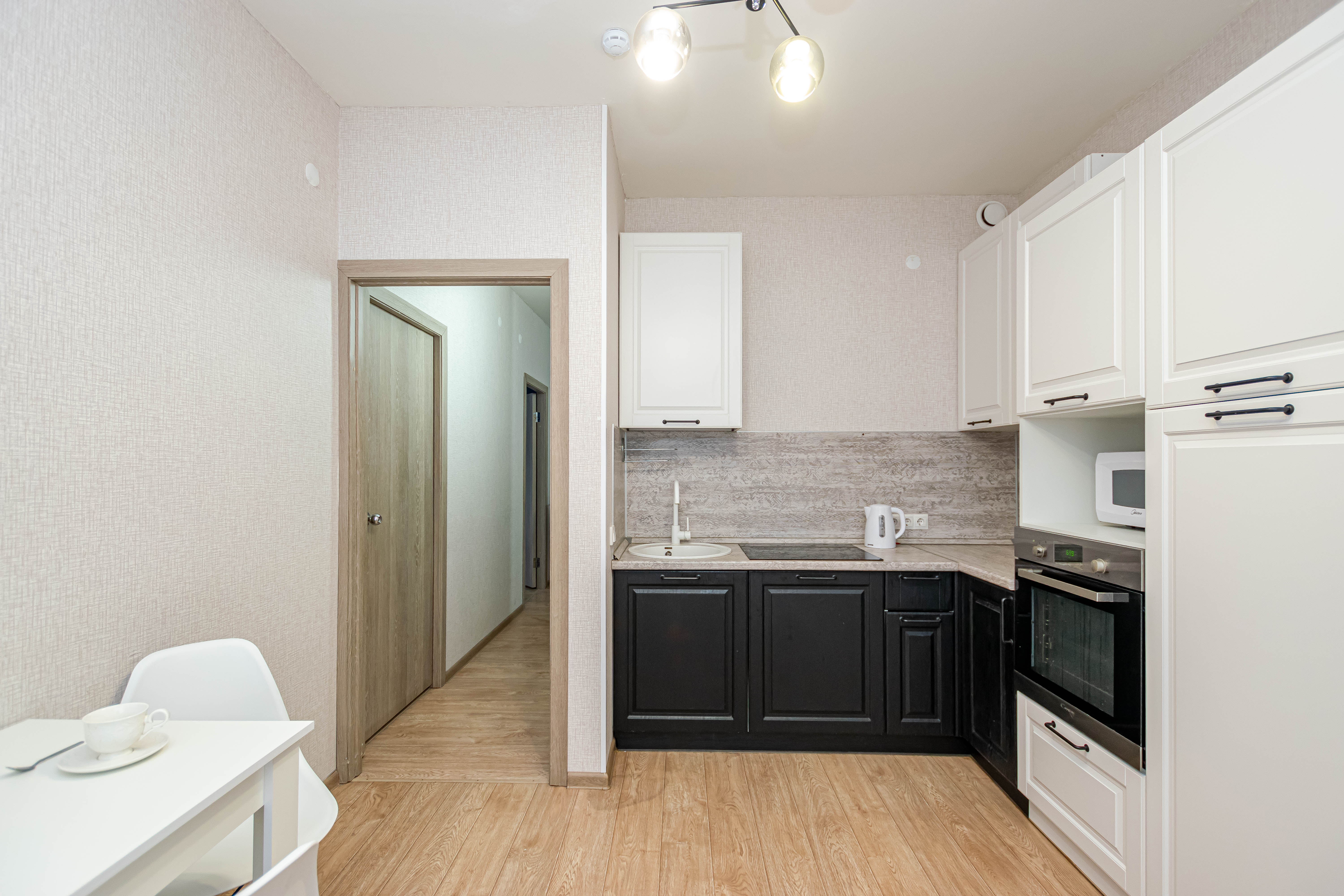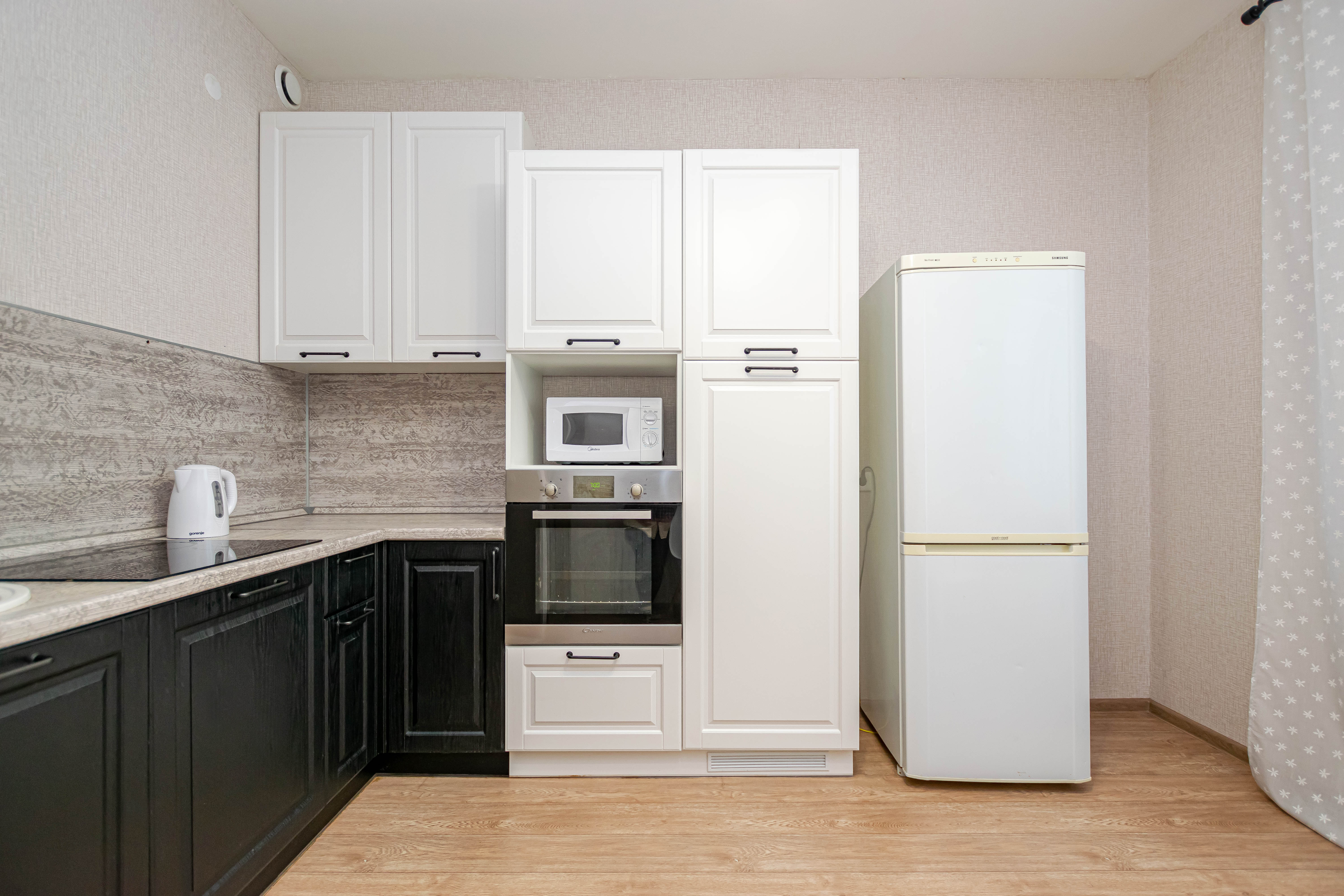 - Полный набор техники: холодильник, стиралка, фен, утюг, чайник, микроволновка, телевизор с функцией Smart-TV.