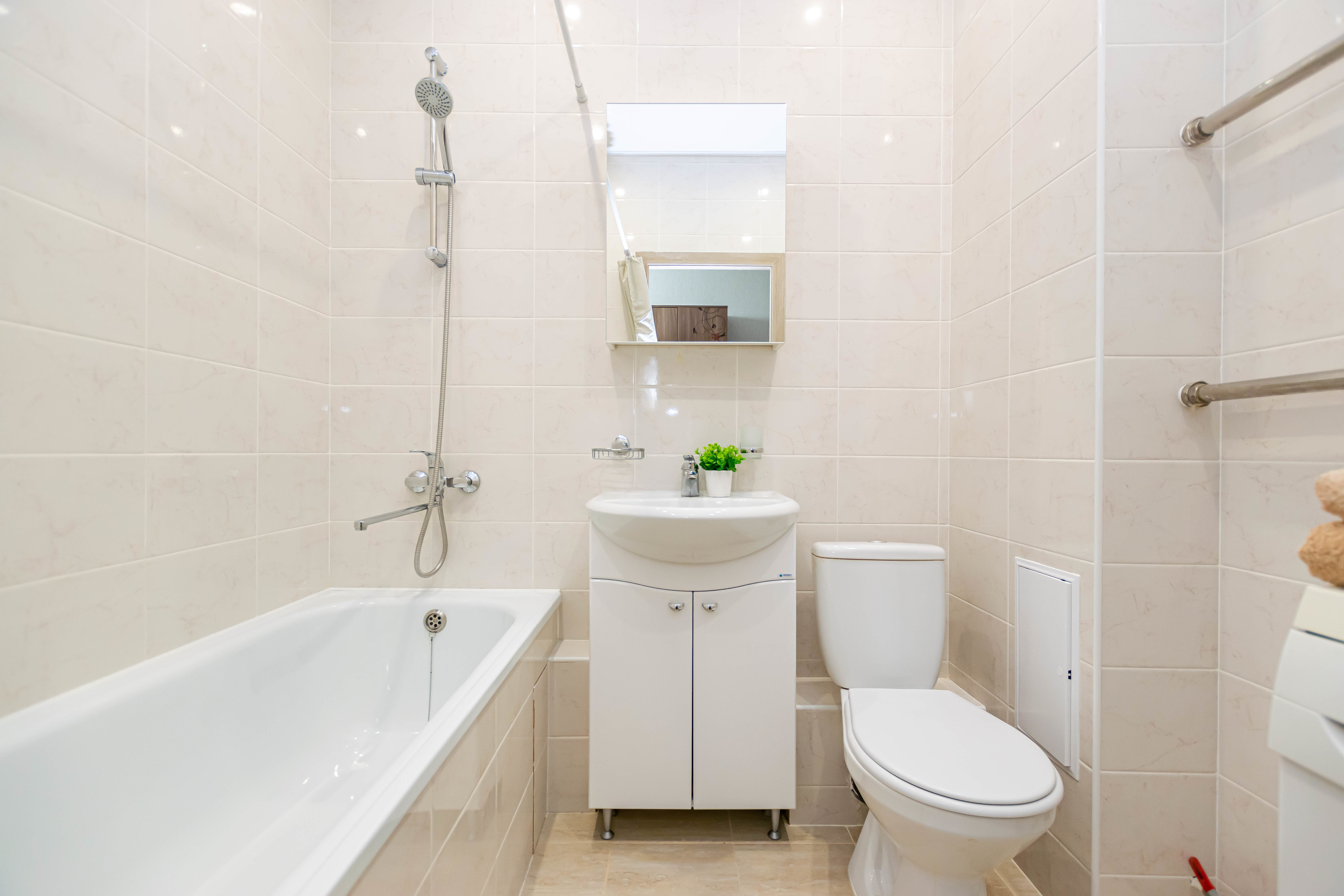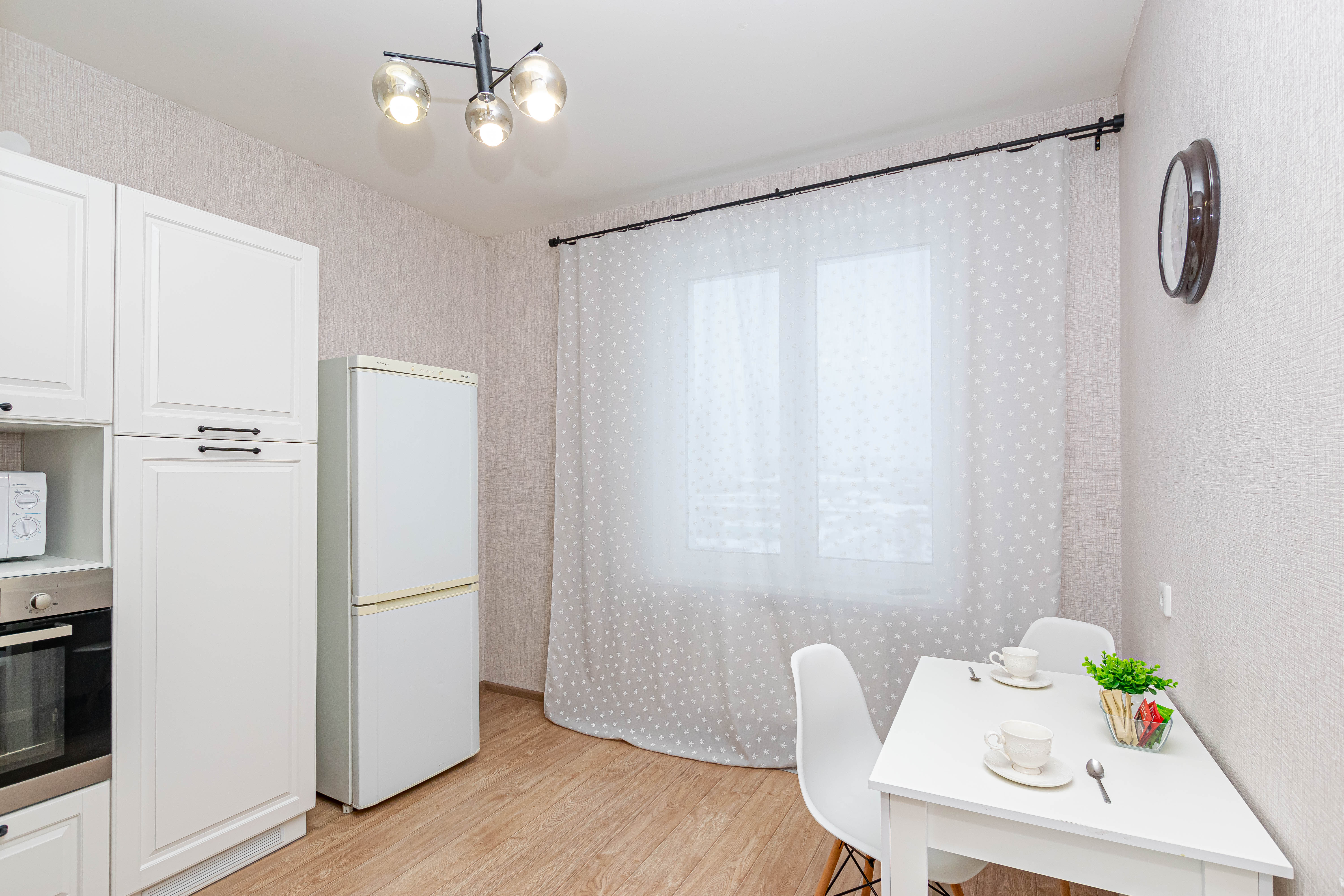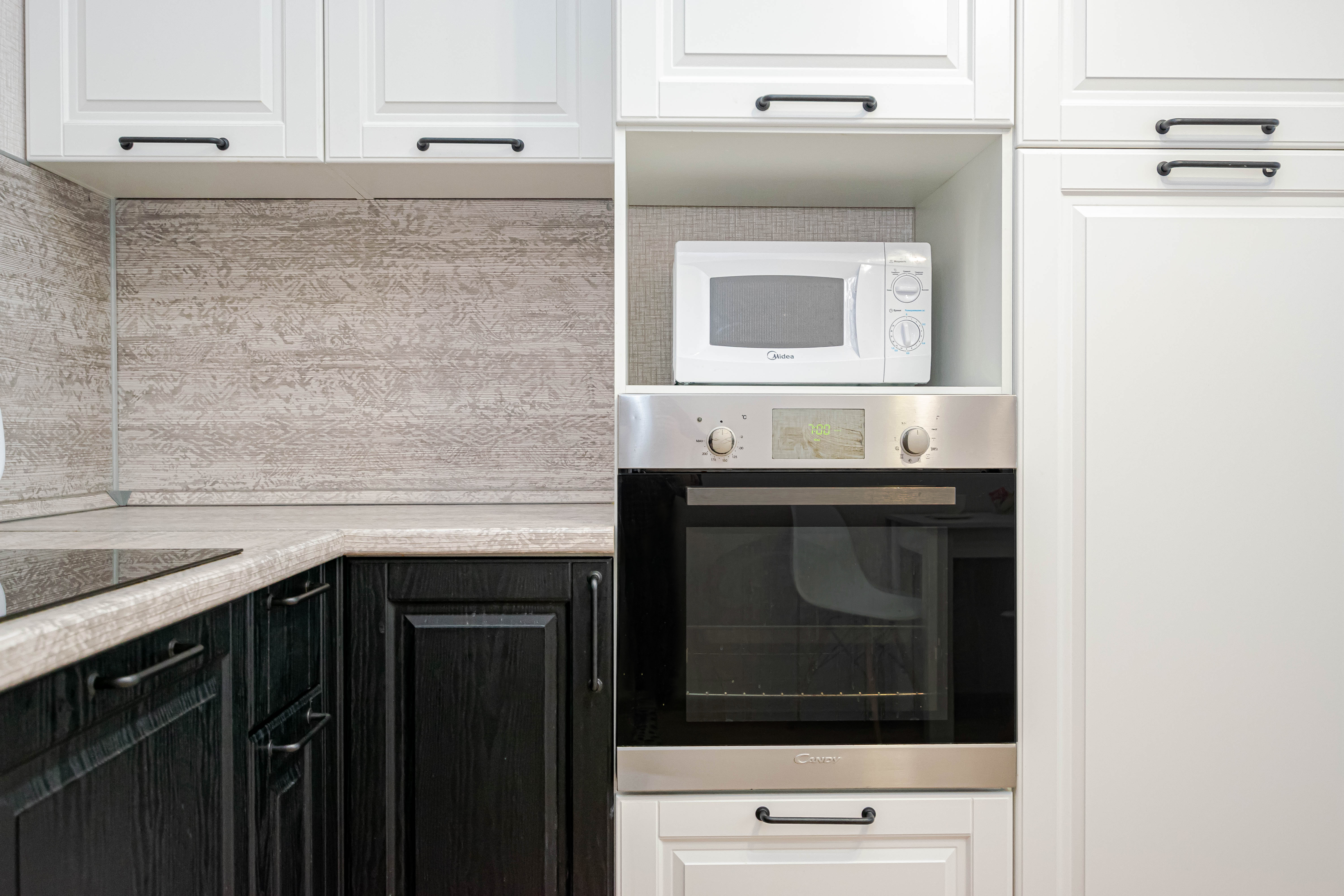 - Полный набор техники: холодильник, стиралка, фен, утюг, чайник, микроволновка, телевизор с функцией Smart-TV.