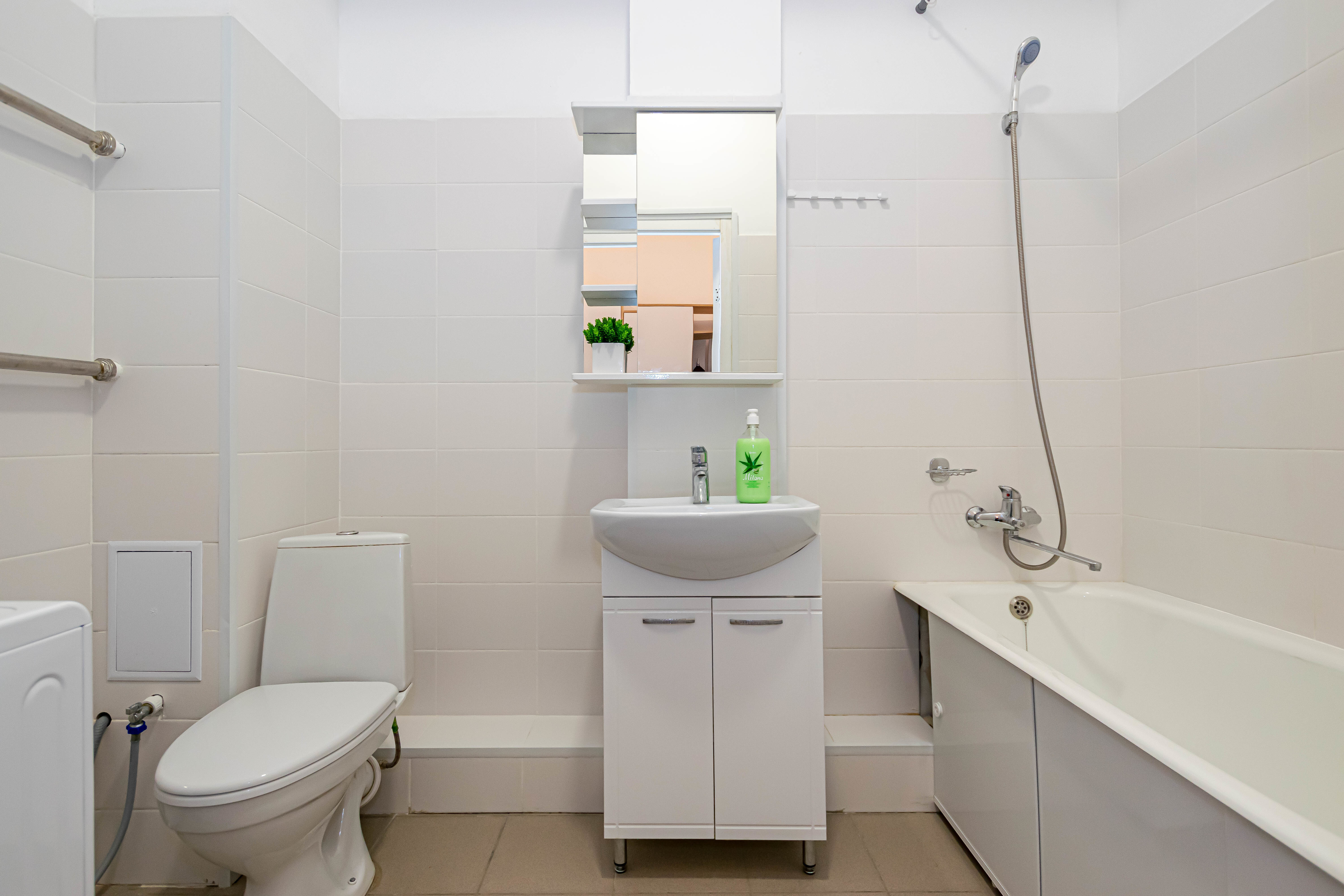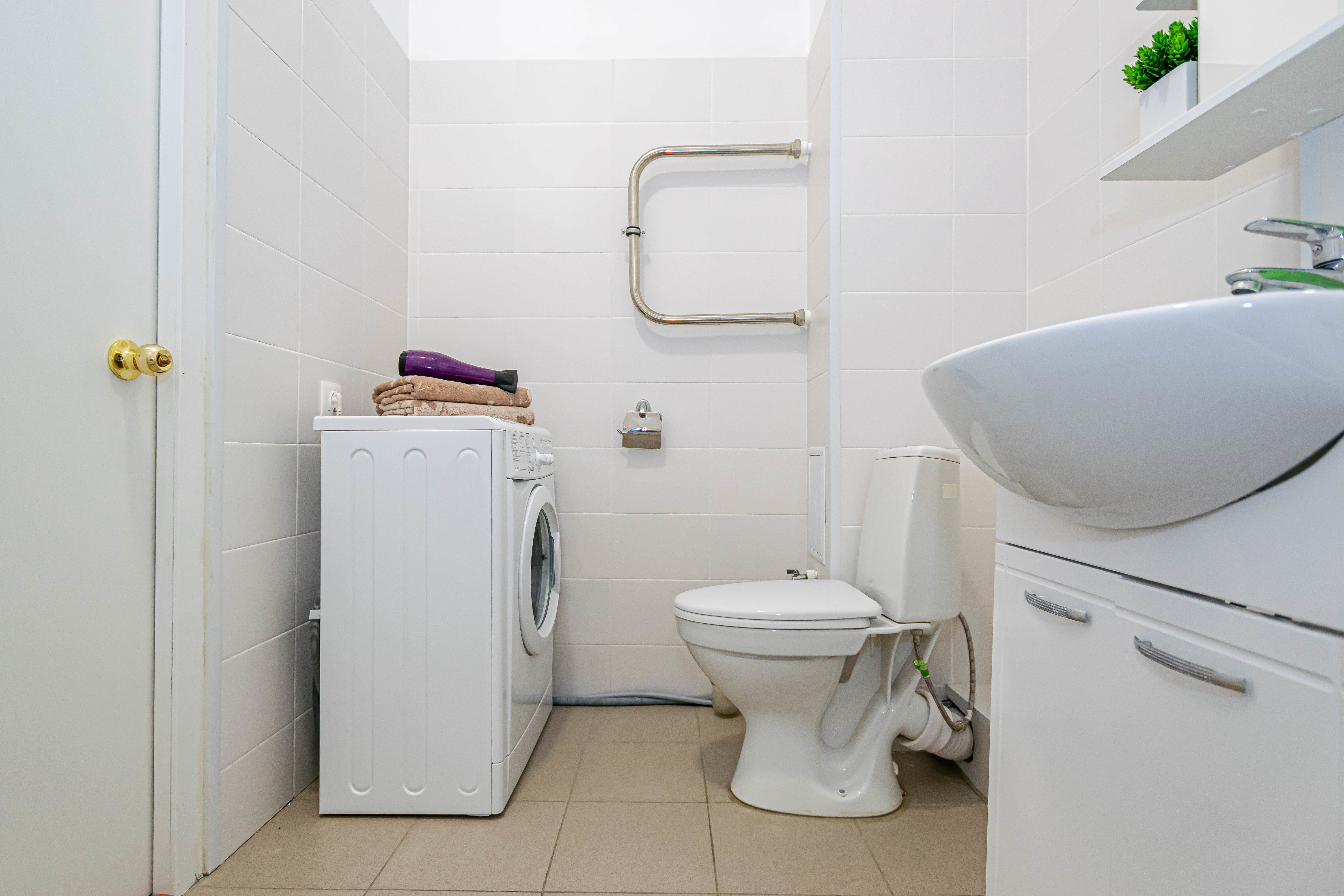 - Полный набор техники: холодильник, стиралка, фен, утюг, чайник, микроволновка, водонагреватель.
