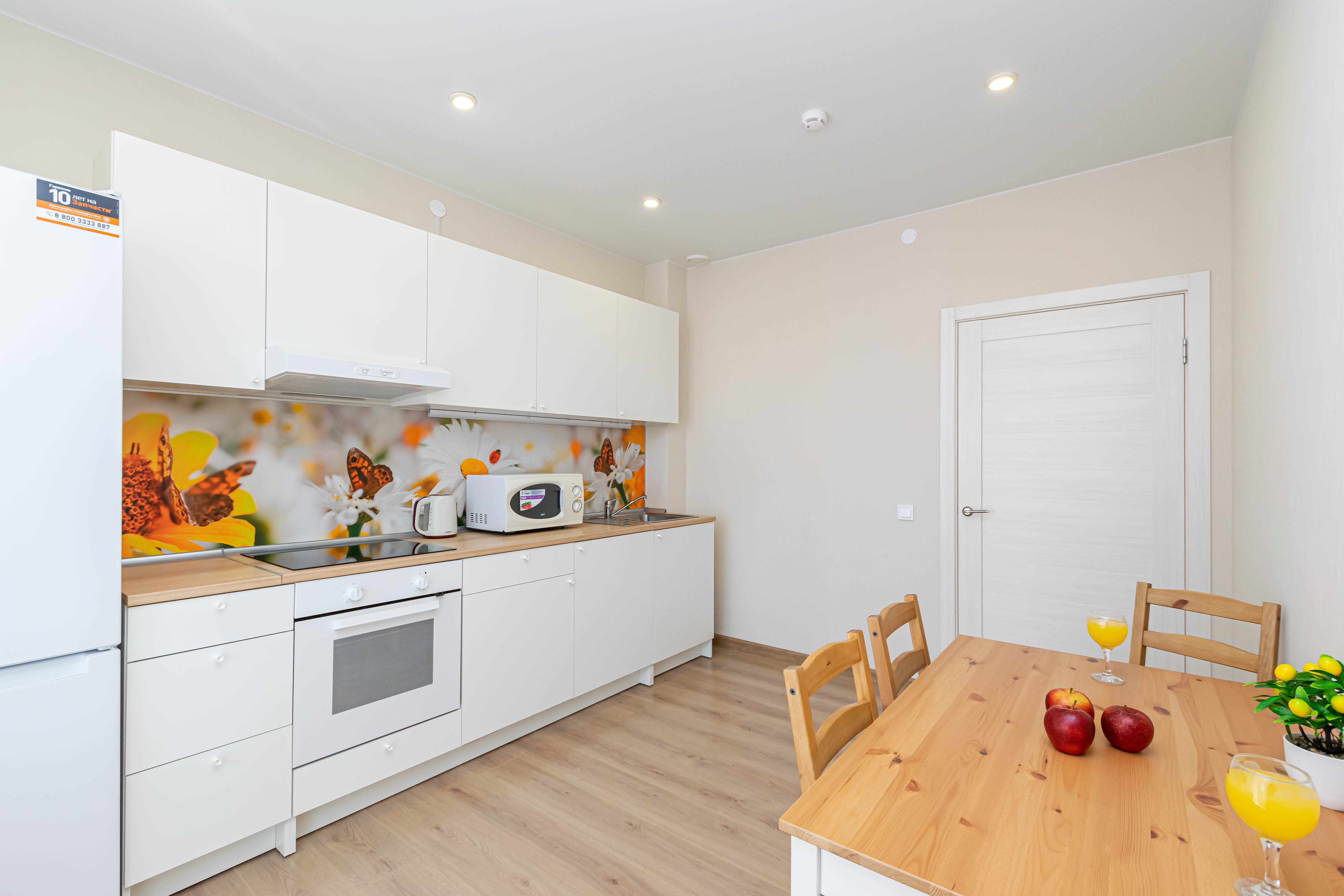 - Полный набор техники: холодильник, 2 телевизора с функцией Smart-TV, стиралка, фен, утюг, чайник, микроволновка, духовка, водонагреватель, 2 кондиционера.