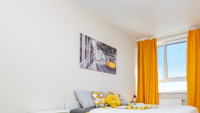 - Две двуспальные кровати с ортопедическим матрасом и нежным постельным бельём из сатина.
