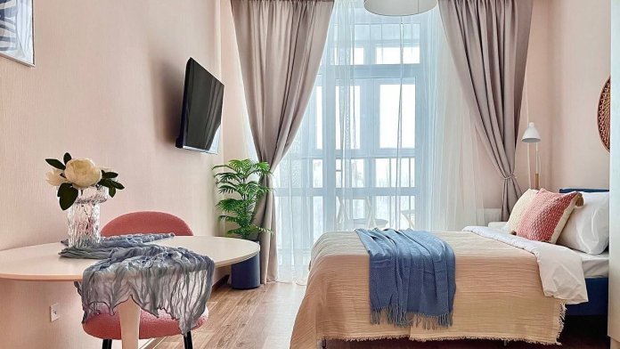 - Полный набор техники: холодильник, телевизор с функцией Smart-TV, стиралка, фен, утюг, чайник, микроволновка.