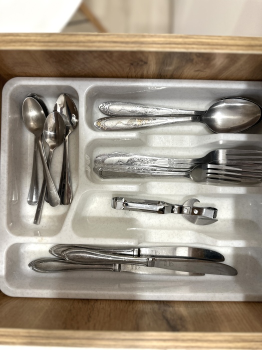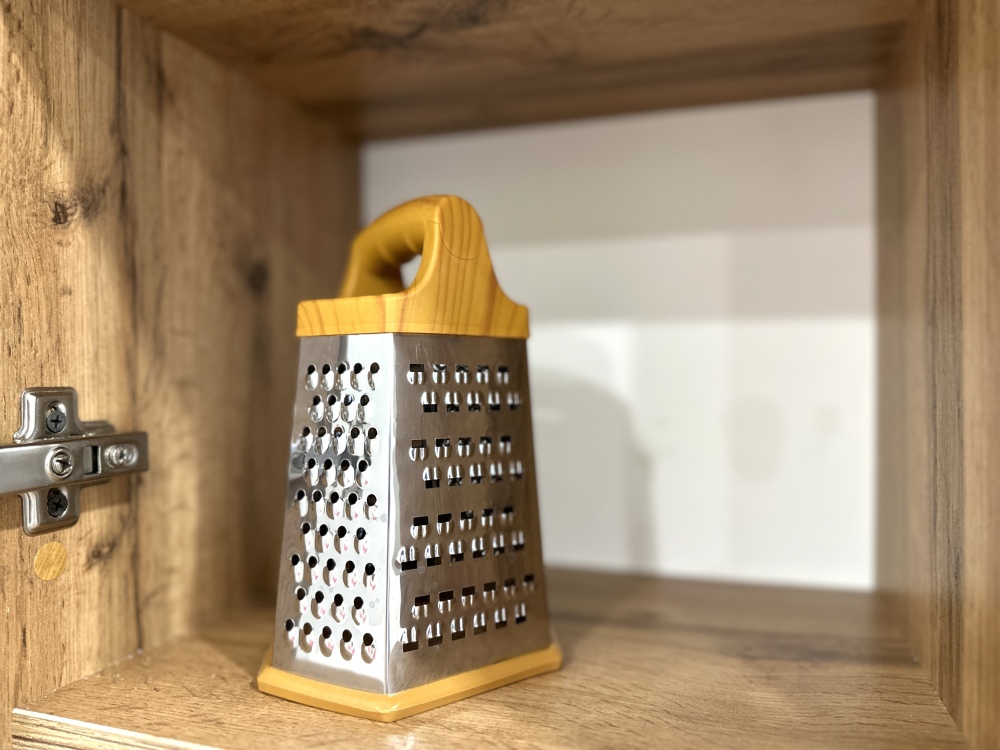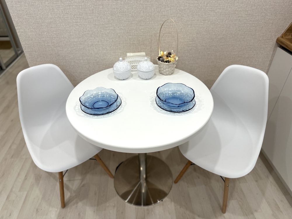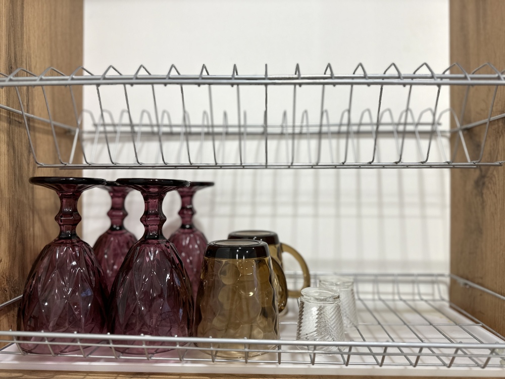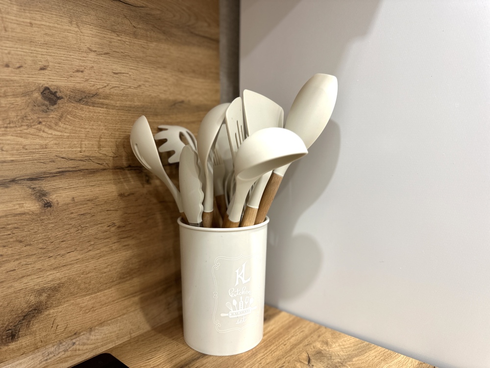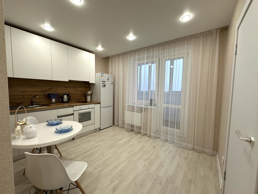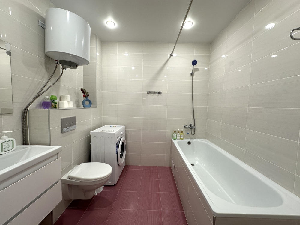 - Современная бытовая техника: варочная панель, духовой шкаф, двухкамерный холодильник, электрочайник, СВЧ, фен, утюг, стиральная машина.