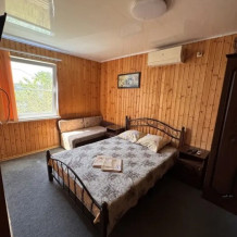К услугам гостей просторные и светлые номера разного уровня комфорта и вместимости, изнутри отделанные деревом. Есть номера с удобствами, оснащенные телевизором, холодильником, сплит-системой и санузлом. Если Вы планируете приехать компанией или вместе с семьей, Вам отлично подойдут 2-комнатные номера со своей кухней. Уборка в номерах, смена постельного белья и полотенец производится по требованию.