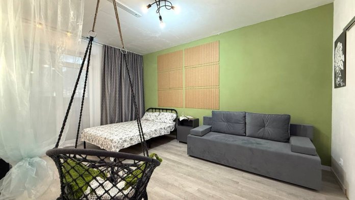 Квартира-студия в Новосибирске. Метро Заельцовская в 10 минутах езды. Все в шаговой доступности - большое количество торговых и развлекательных центров для проведения досуга (кинотеатры, рестораны). До центра города, площади Ленина, Оперного театра 20 минут езды.