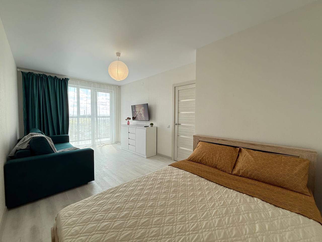 квартира-студия с двумя кроватями