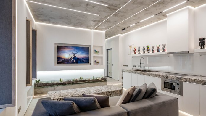 Студия выполнена по уникальному дизайн-проекту в стиле современный минимализм. Несмотря на небольшую площадь, здесь есть все для полноценного проживания: кухня с современной бытовой техникой, гостиная зона с удобной мягкой мебелью, спальня ,белоснежное постельное белье, санузел с итальянской сантехникой. Особая изюминка этой квартиры - разноуровневое освещение, которое позволяет создать невероятную атмосферу и комфорт. Благодаря своему уникальному дизайну, апартаменты подойдут не только для проживания, но и для проведения фотосессий и съемок.