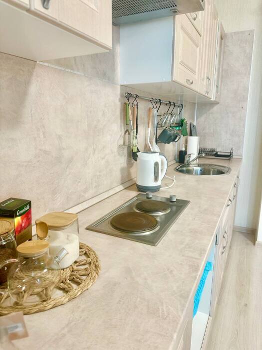 Квартира укомплектована всей необходимой мебелью и техникой (фен, утюг, тостер, блендер, чайник, пылесос, холодильник, СВЧ-печь, варочная панель), а так же средствами гигиены: полотенца, постельное белье, посуда. У нас всегда Вы можете угоститься вкусным чай, кофе с конфетами и печеньем.