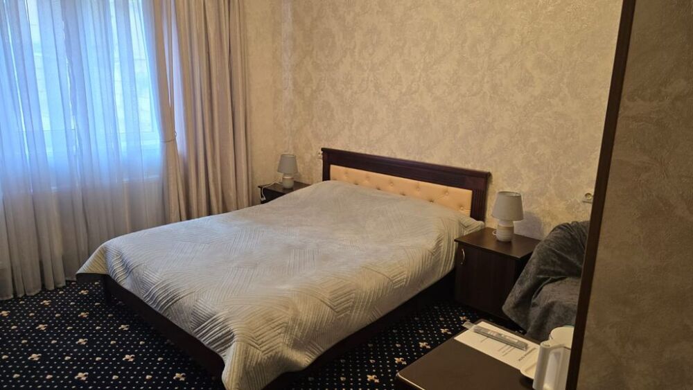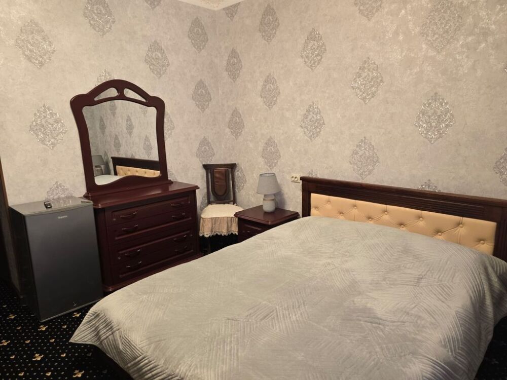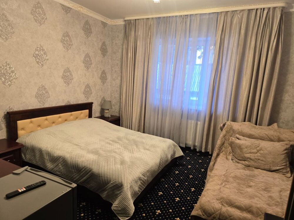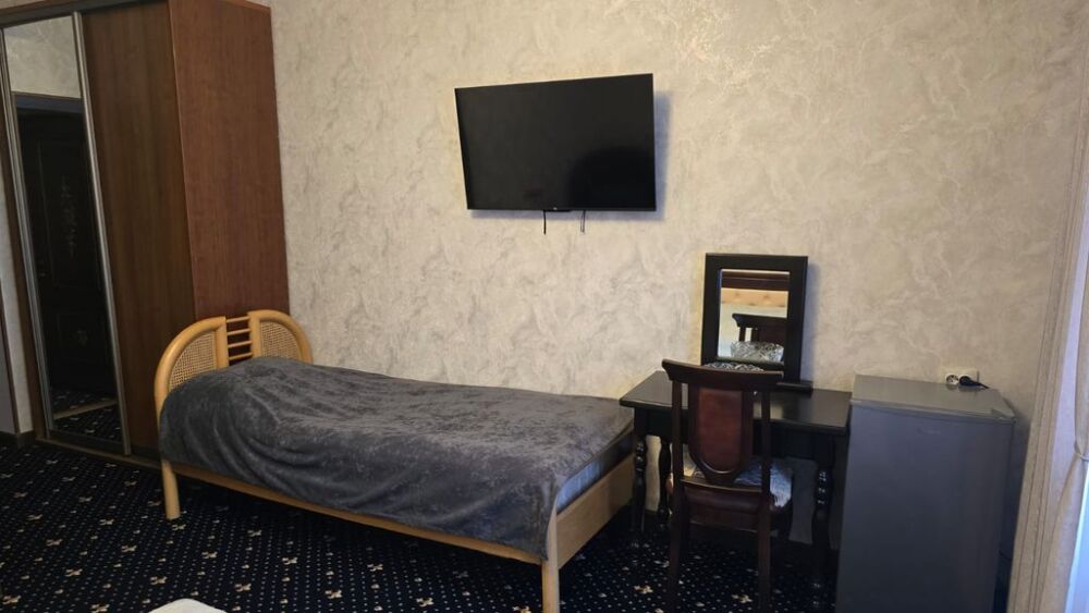 Трёхместный стандартный номер площадью 25 кв. м. с видом на улицу и двор.