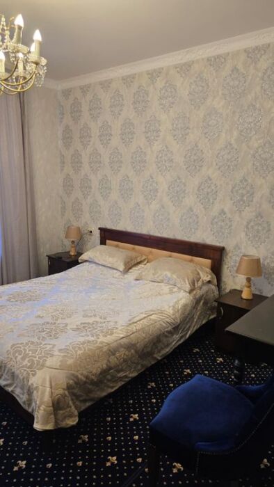 Имеет спальню с приятным интерьером.