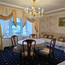 Гостевой дом «Golden house» расположен в самом сердце Теберды, всего в нескольких минутах от живописного озера Кара-кёл, в 5 минутах Джамагатское ущелье, биосферный заповедник, в 15 минутах горнолыжный курорт Домбай.