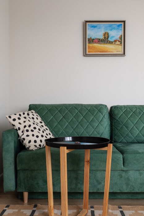 Вмещает до 3 гостей: двуспальная кровать и диван-кровать.