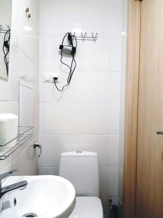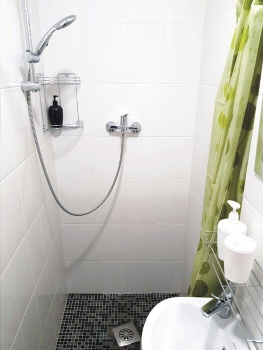 Собственная туалетная комната с душем: фен, полотенца, мыло, шампунь, зубной набор, одноразовые тапочки и сланцы - всё включено.