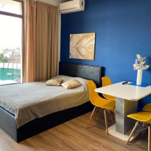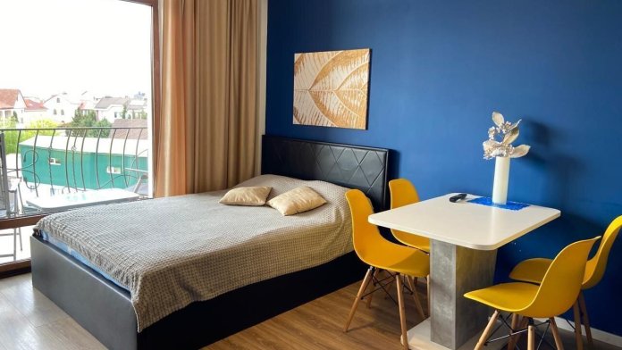 Современная студия в комплексe «Рaшад». Комплекс расположен у моря, на территории комплекса есть собственный бассейн, магазин с кулинарией, кафетерий, спортзал, СПА-комплекс, платная стоянка для автомобилей (по желанию).
