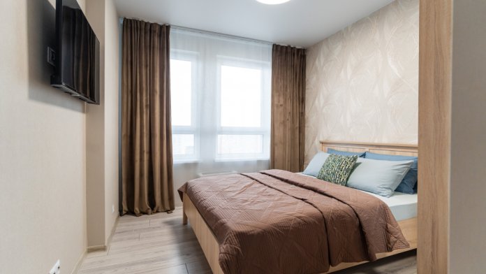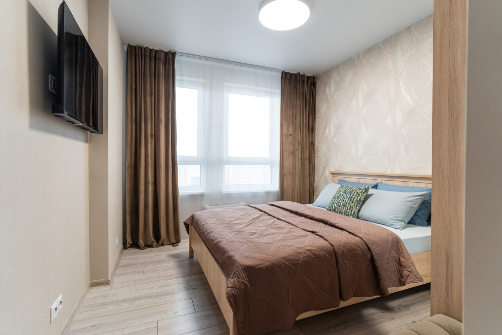 - Уютная спальня с двуспальной кроватью и качественным постельным бельём.
