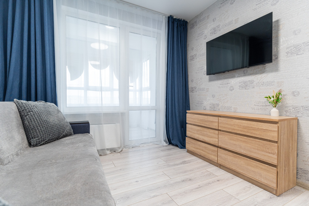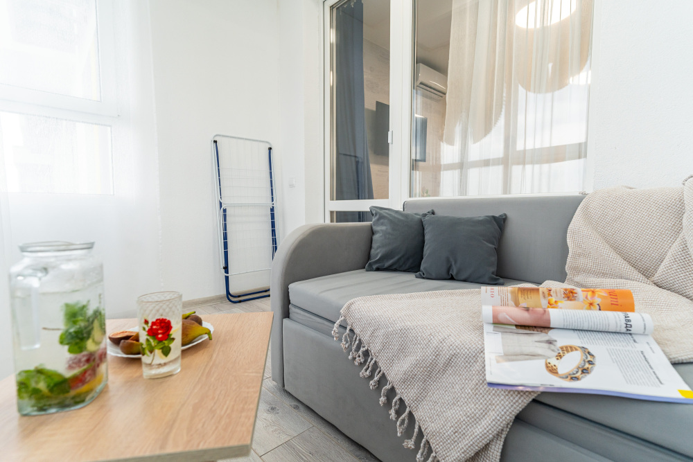 - Зона гостиной с раскладным диваном.