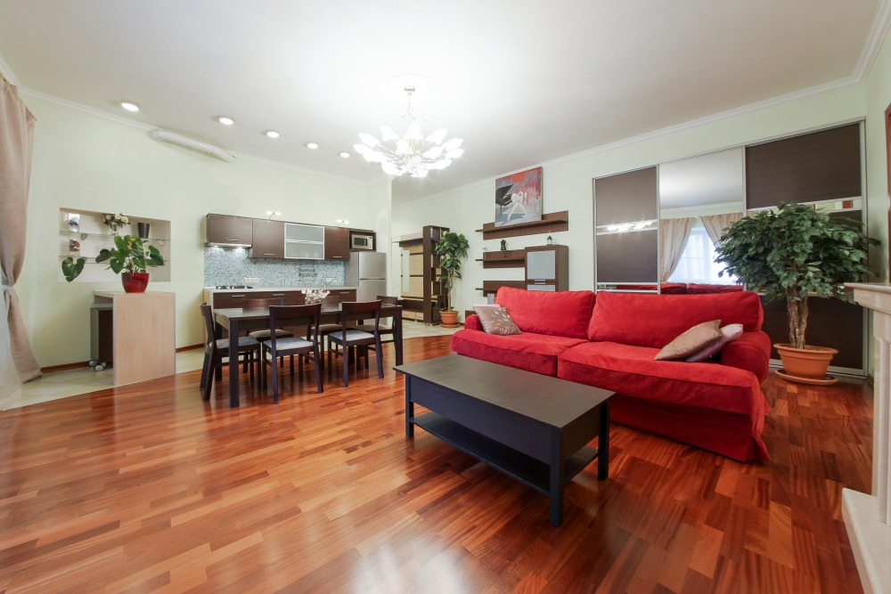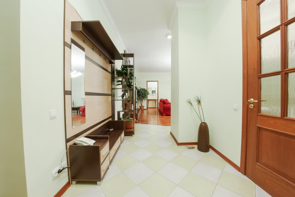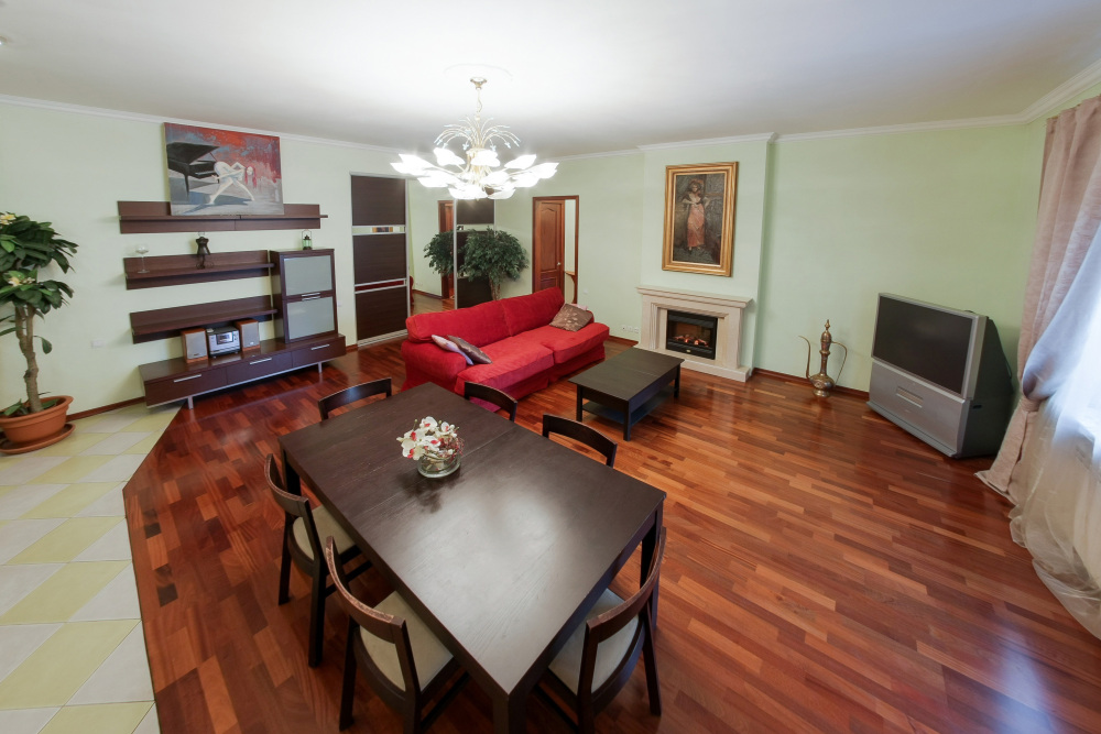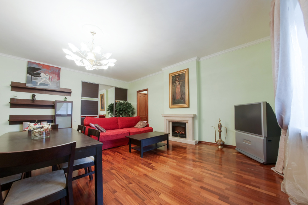 Квартира имеет современный интерьер, оборудована всем необходимым для комфортного проживания или отдыха. Спокойные и теплые тона отделки гостиной, картины и другие элементы интерьера, выполненные одними из лучших декораторов Петербурга, помогут Вам окунуться в атмосферу уюта, тишины и спокойствия. Вы можете принять гостей, посидеть перед камином (в гостиной имеется теплый эклектро-камин), чтобы посовещаться или обсудить что-либо, можете принять роскошную ванну и отдохнуть.