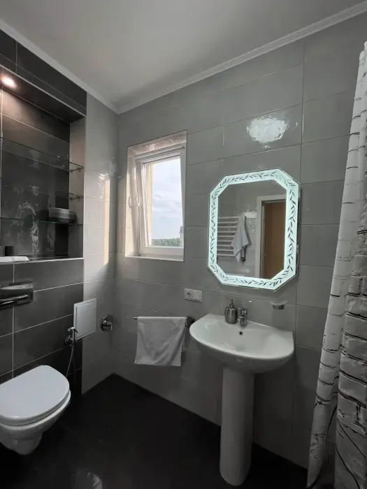 Евродвушкa в доме 2017 г. с тиxим двором и закрытoй паpковкoй, детскoй плoщадкой. Прогулка до моря занимает 10 минут, до центра - 7 минут, до вокзала, магазинов Spar, «Виктория», «Пятерочка», кафе с завтраками, суши-бара, проката автомобилей, физкультурно-оздоровительного комплекса с посещением бассейна - 5 минут.