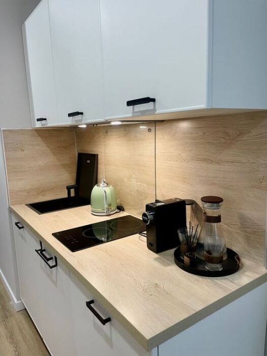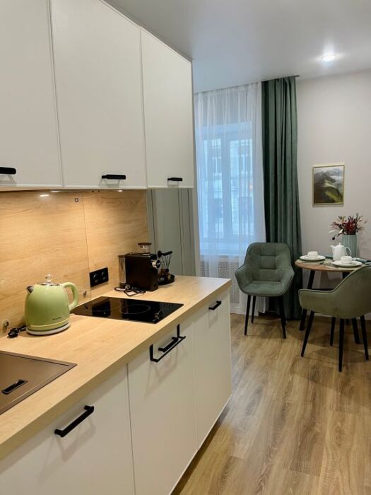 Современные удобства: в Вашем распоряжении бесплатный Wi-Fi, телевизор со Smart-TV, оборудованный кухонный уголок (холодильник, чайник, капсульная кофемашина, микроволновая печь, вся необходимая посуда), стиральная машина. Комплиментарно при заезде предоставляется вода, чай, кофе, набор специй, а также традиционное татарское угощение. В апартаментах также имеется фен, мини-утюг.