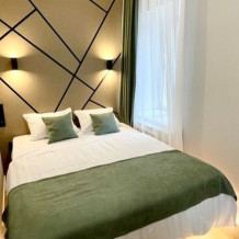 1-комнатные апартаменты: функциональное пространство с комфортной зоной для отдыха и сна, оформление в современном стиле.