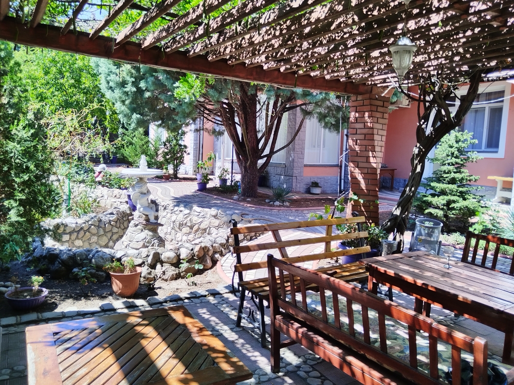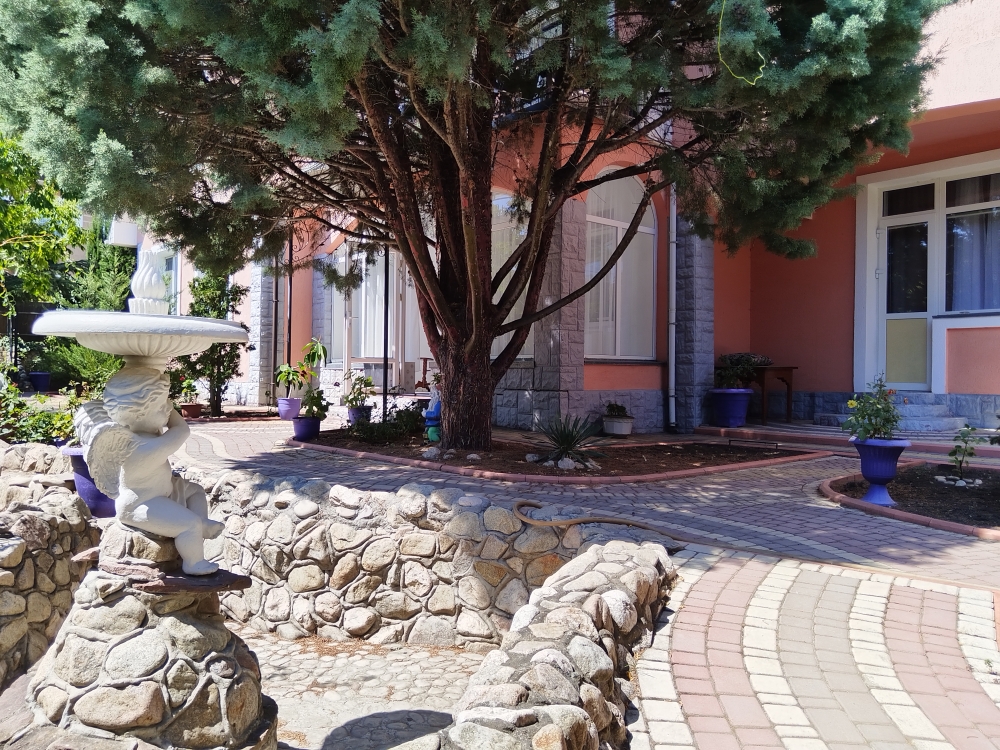 Гостевой дом расположен в живописной части центра Феодосии. Зеленая территория с розами, крымскими деревьями и кипарисами создает атмосферу частного дворика. Все рядом и удобно. Магазины и кафе в шаговой доступности. Детский парк Комсомольский рядом. Центральная набережная в 6 минут ходьбы.