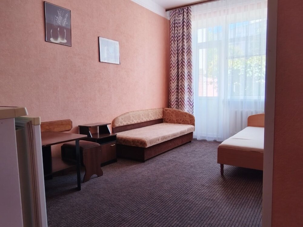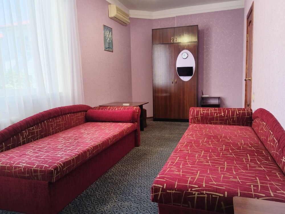 Для размещения представлены однокомнатные 2-х и 3-местные номера, а таже 2-комнатные, рассчитанные на 3-4 спальных места. Все номера с удобствами.