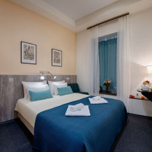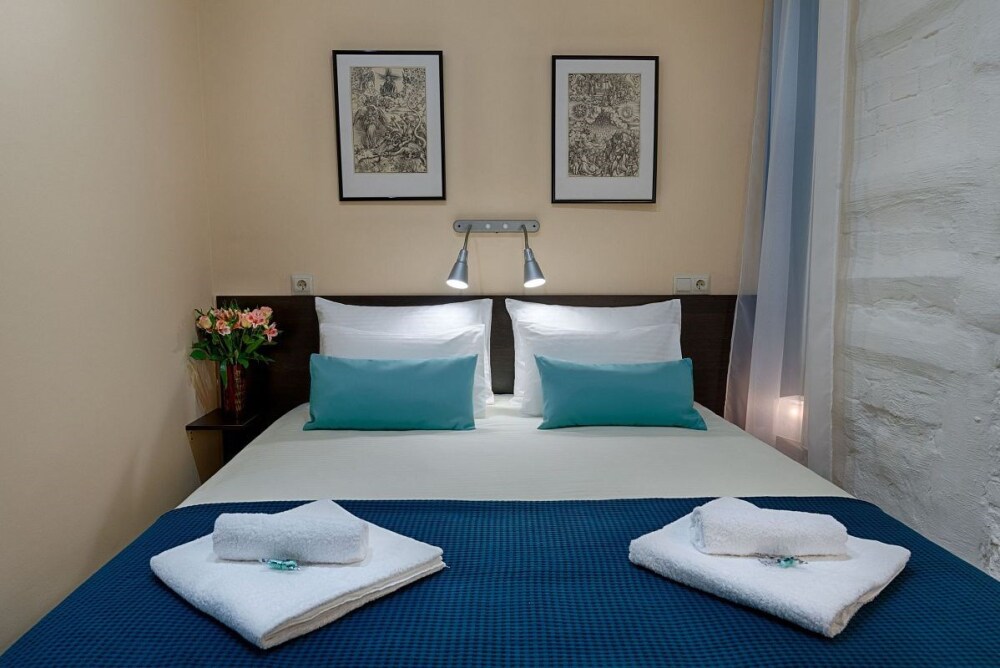 При размещении 1-2 человек на выбор предлагается либо двуспальная кровать, либо 2 раздельные. Есть возможность установки дополнительного места (евро-раскладушки) для размещения третьего человека. Для маленьких детей есть возможность поставить детскую кроватку-манеж.