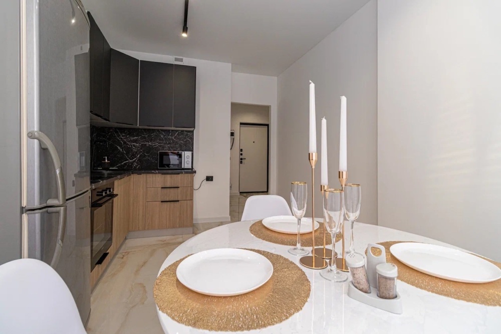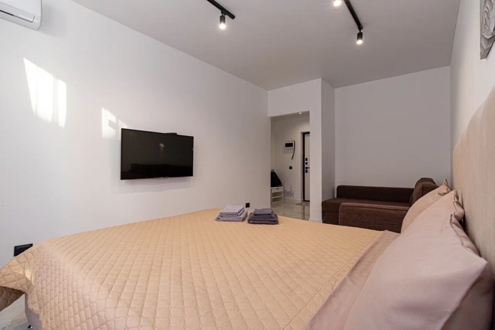 Уютная домашняя обстановка, полностью оборудованные кухня, ванная и спальня.