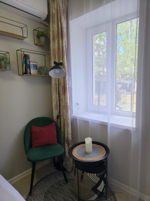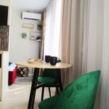 Стильная чистая студия в старом фонде, но с новым ремонтом, оснащена всем необходимым для комфортного проживания 2 взрослых с ребёнком. Лучший песчаный пляж Фeoдocии - в 800 м (2 линия).