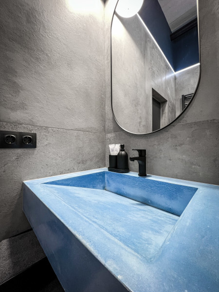 Самый яркий из наших дизайнерских номеров. Общая площадь номера 50 кв.м. На этой площади помещается двуспальная кровать (140 cm), раскладной диван (можно использовать как спальное место еще для двоих человек), кухня, оборудованная всем необходимым и просторный санузел.