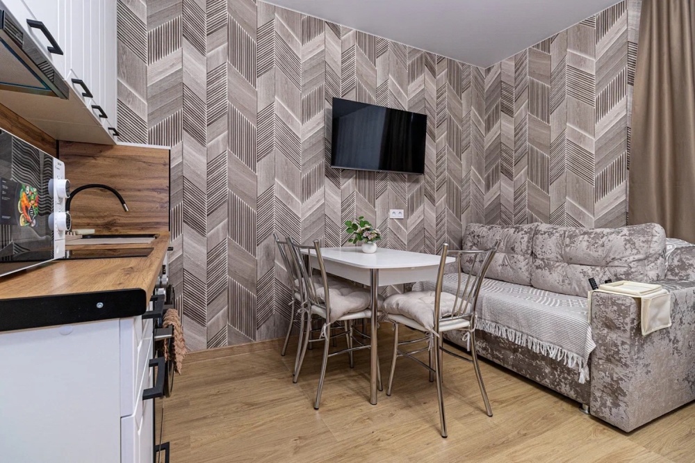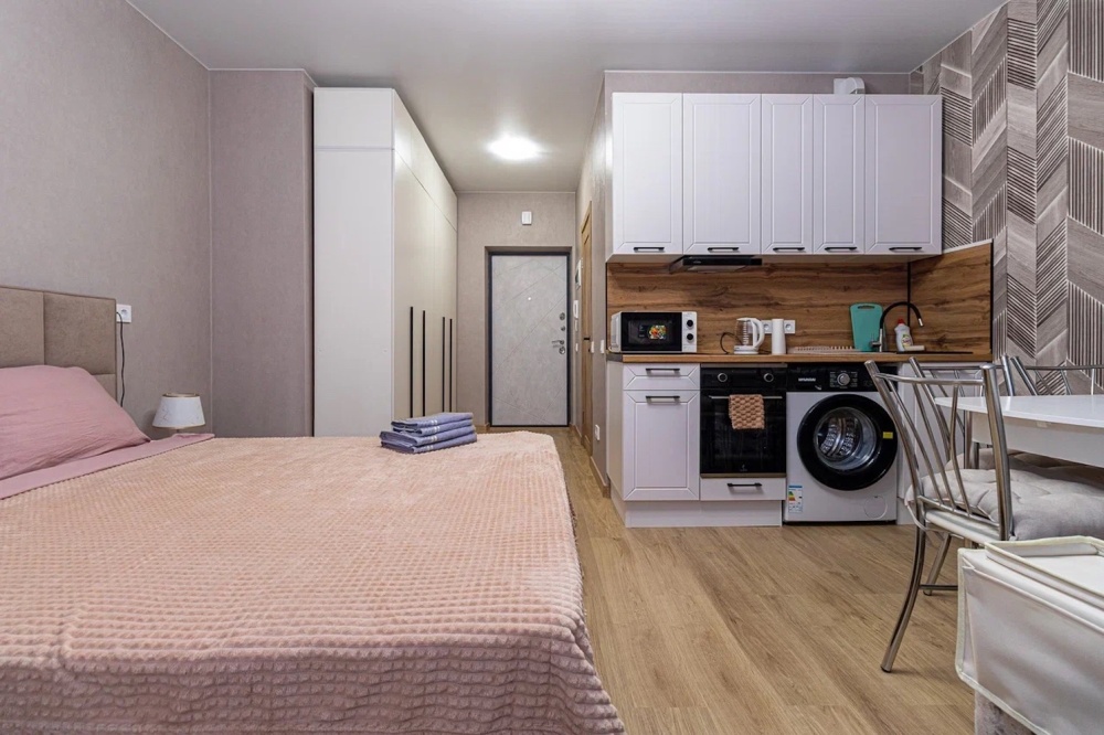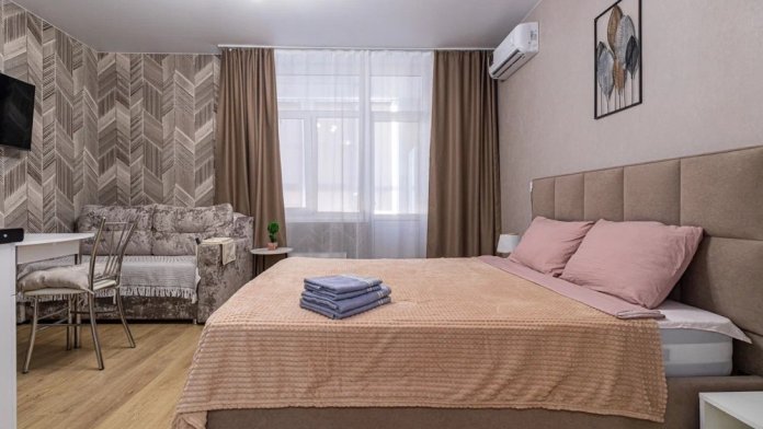 Уютная домашняя обстановка, полностью оборудованные кухня, ванная и спальня.