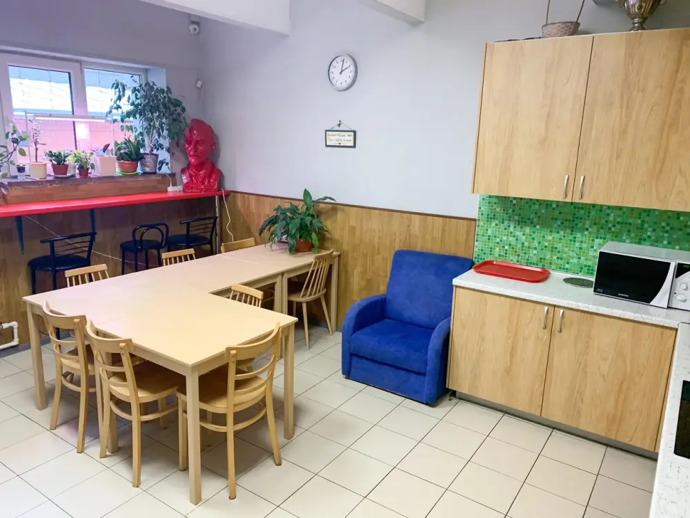 Наши удобства включают в себя: комнаты с раздельными спальными местами, общие ванные комнаты на этаже, 3 санузла и 3 душевые, отдельная кухня, а также бесплатный Wi-Fi. Мы предоставляем бесплатно постельное белье, полотенца, фен, утюг, стиральную машину, гладильную доску и сушилку. Хостел работает круглосуточно.