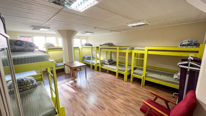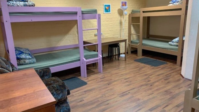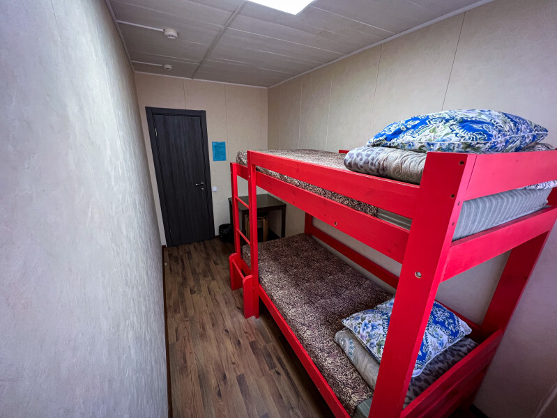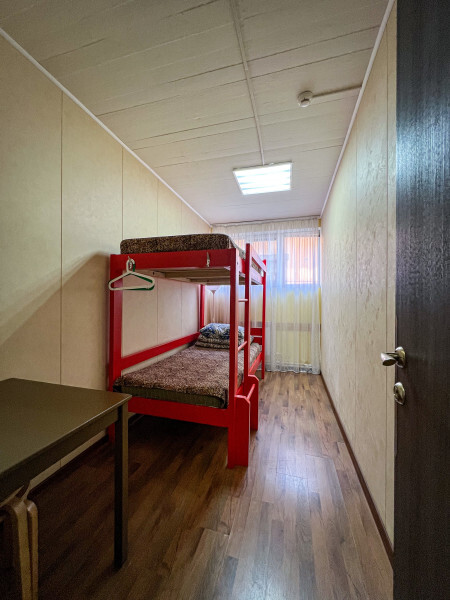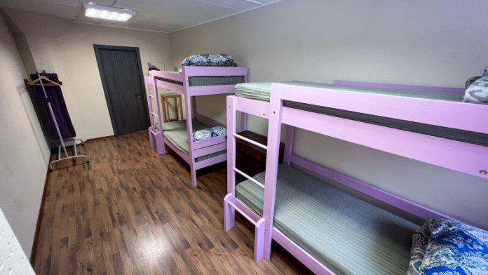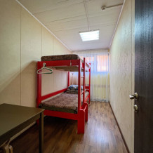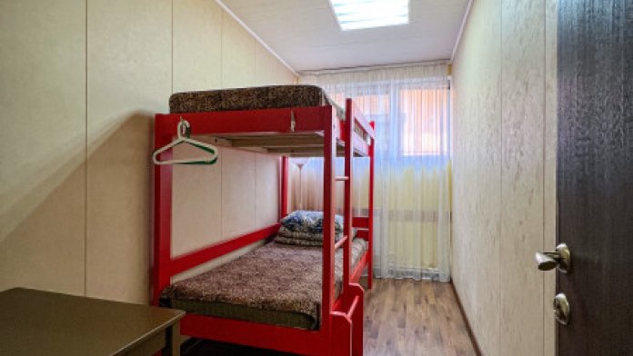 Десятиместный номер оборудован пятью двухъярусными кроватями.