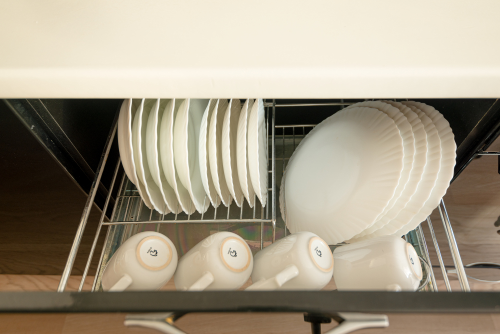 – Посуда, столовые приборы, кастрюли и сковороды.