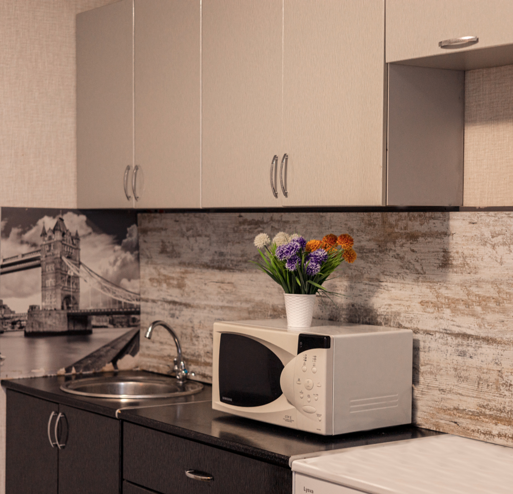 В нашем уютном уголке Вы найдете: ароматный чай и кофе, чтобы согреться и насладиться моментом, Нежный шампунь, все кухонные приборы и многое другое.