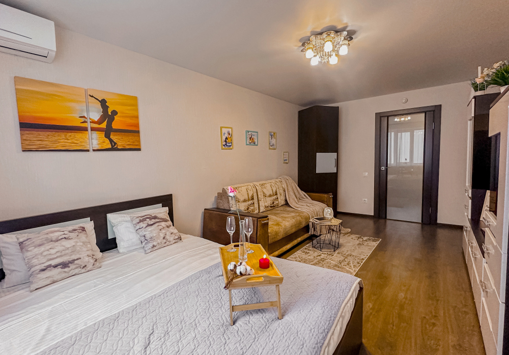 Вас ожидает: идеальная чистота, свежие постельные бельё и полотенца, полностью оборудованная кухня, микроволновая печь, холодильник, стиральная машина, утюг, гладильная доска, фен, кондиционер, Smart-TV, высокоскоростной интернет Wi-Fi.
