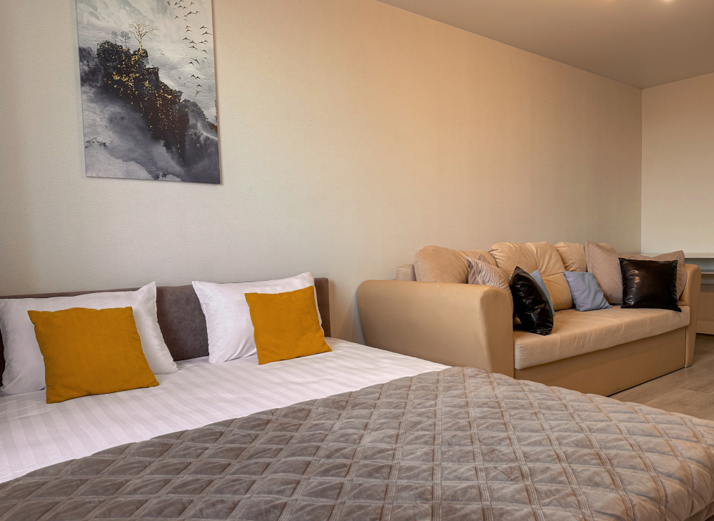 Вас ожидает: идеальная чистота, свежие постельные бельё и полотенца, полностью оборудованная кухня, микроволновая печь, холодильник, стиральная машина, утюг, гладильная доска, фен, кондиционер, Smart-TV, высокоскоростной интернет Wi-Fi.
